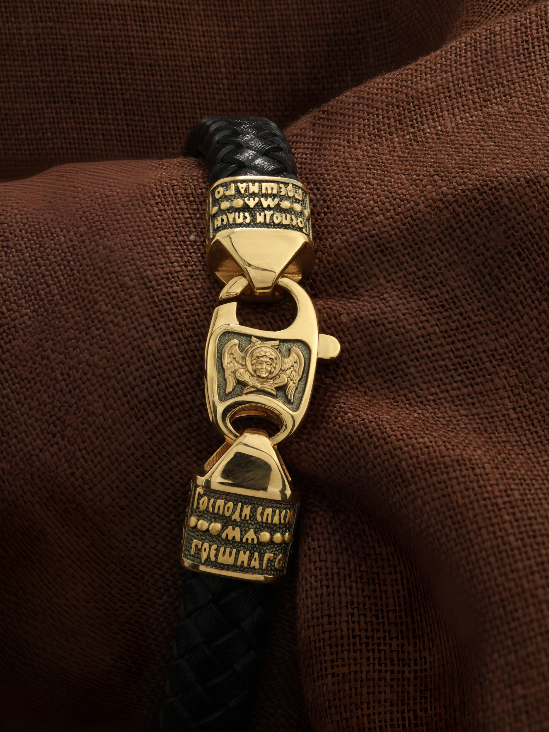 На концах расположены концевики с молитвой: «Господи, спаси мя грешного». Соединяет концевики замочек-карабин в форме рыбки. На замочке изображен шестикрылый Серафим — самый приближенный к Господу Ангел.