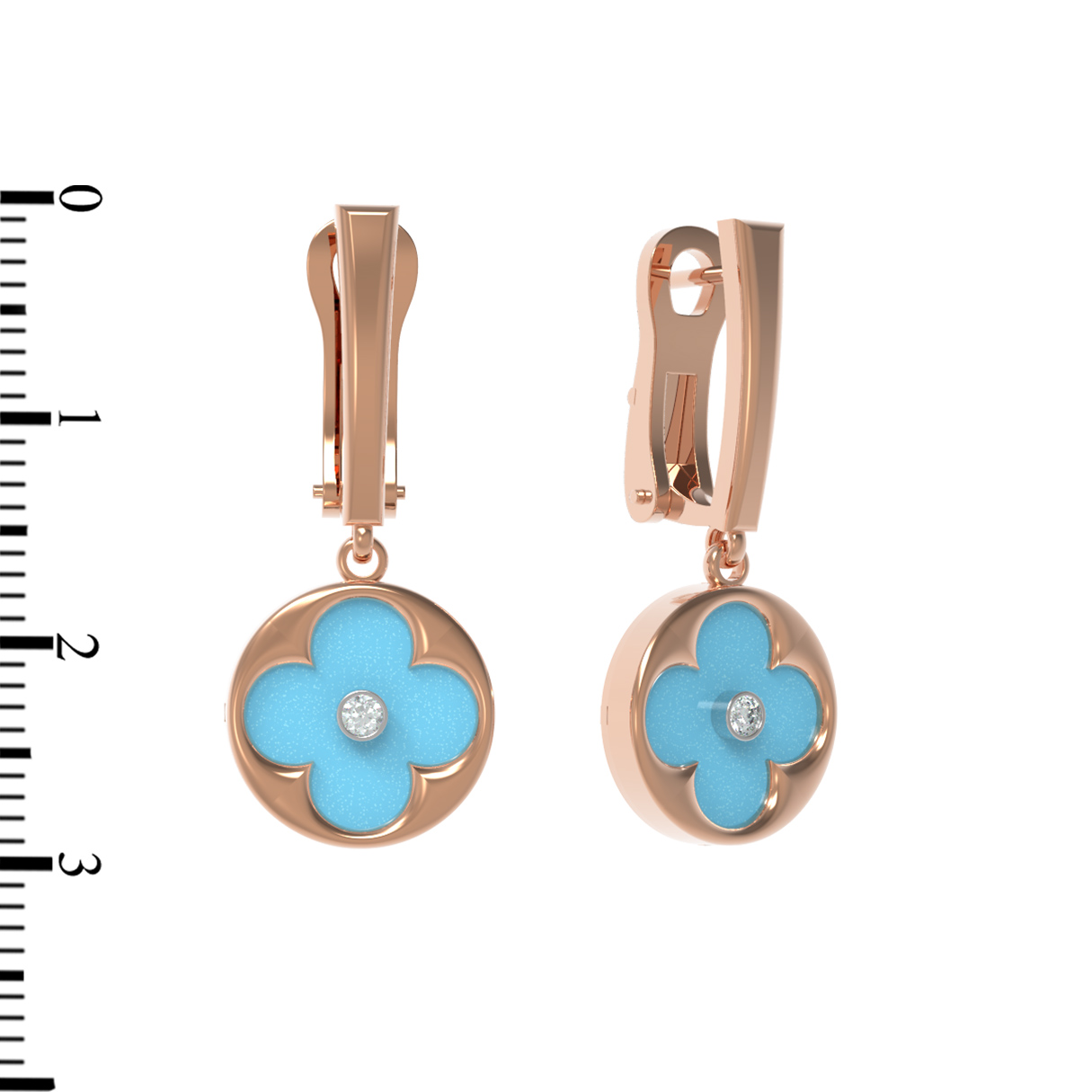 Серьги из золота c бриллиантами и бирюзой