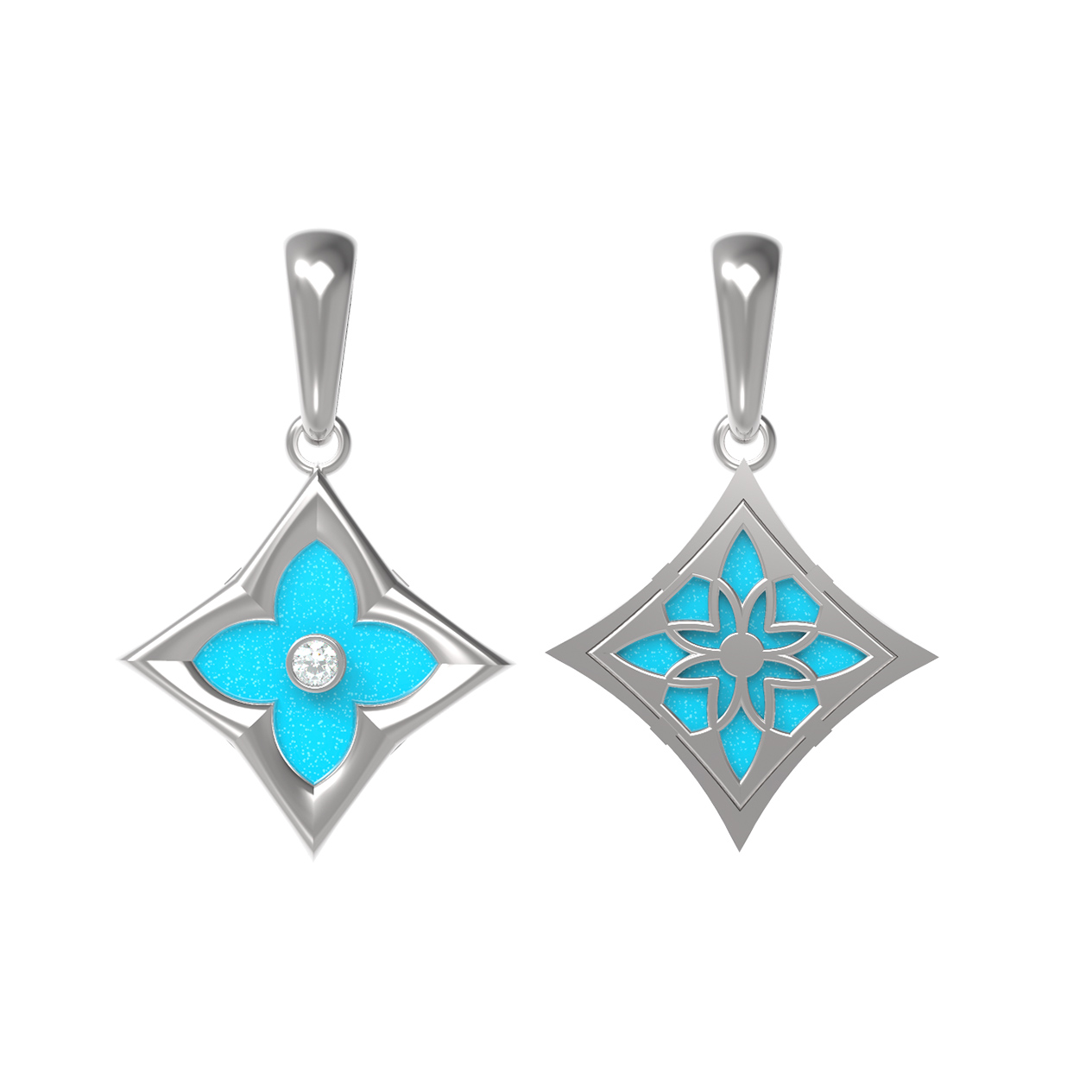 Подвеска из белого золота c бриллиантами и бирюзой