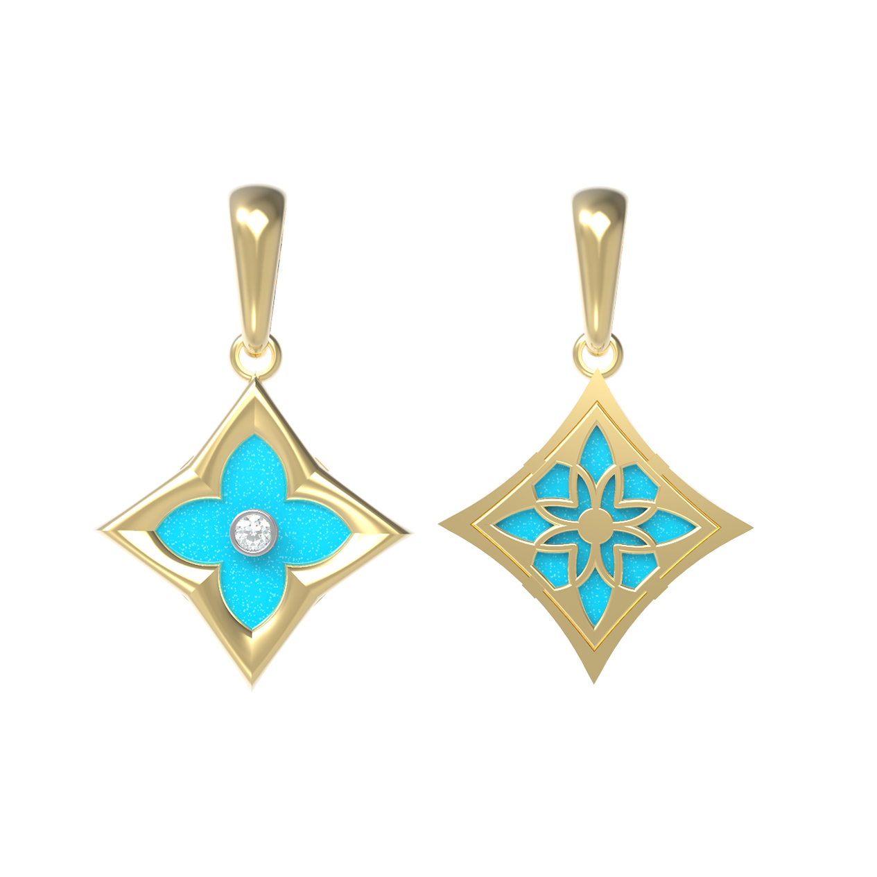 Подвеска из лимонного золота c бриллиантами и бирюзой