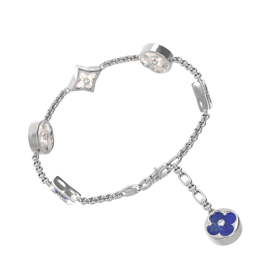 Браслет из белого золота c бриллиантами, лазуритом и перламутром