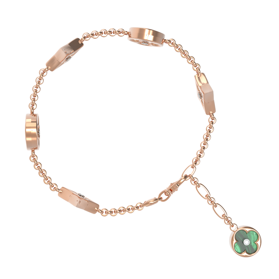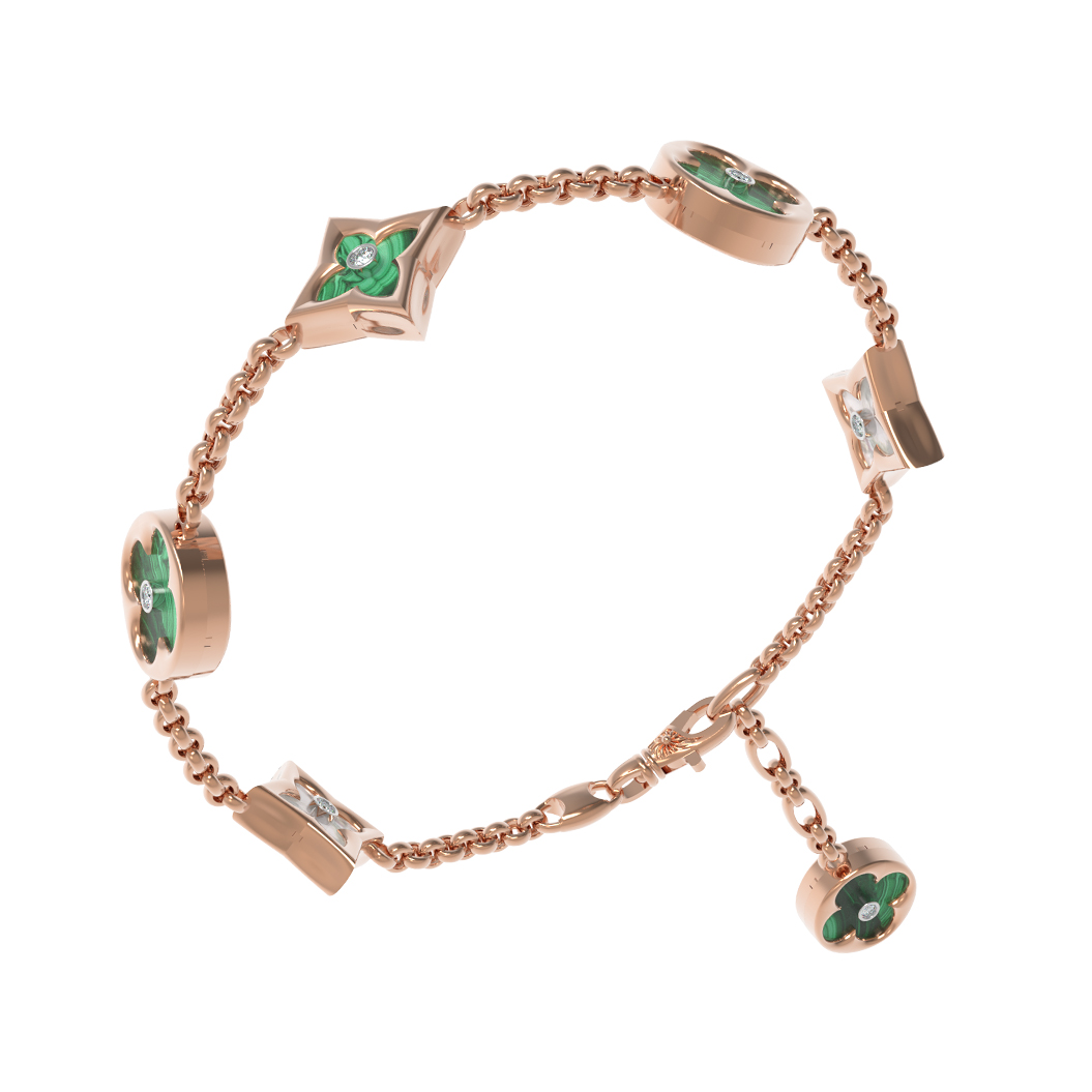 Браслет из золота c бриллиантами, малахитом и перламутром