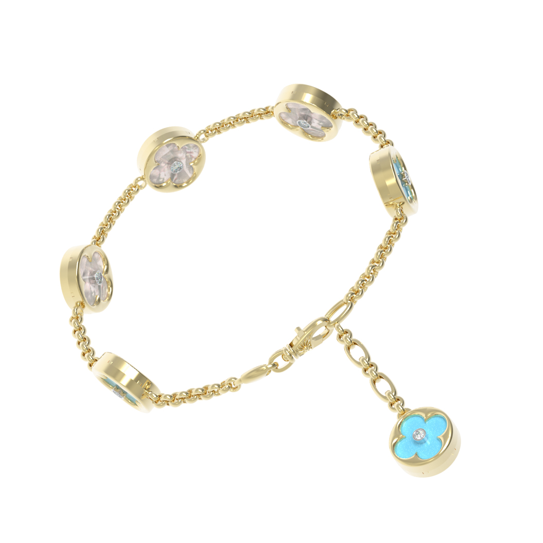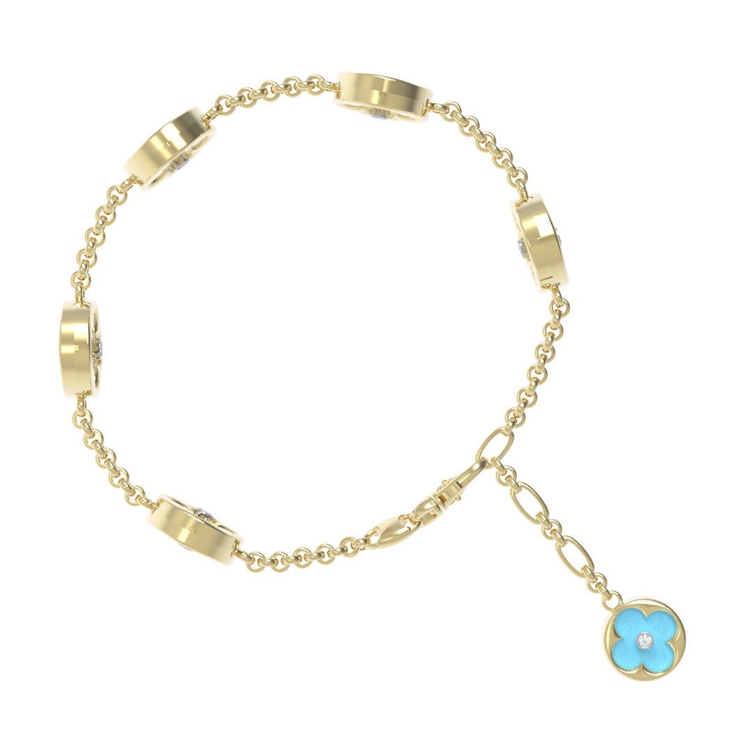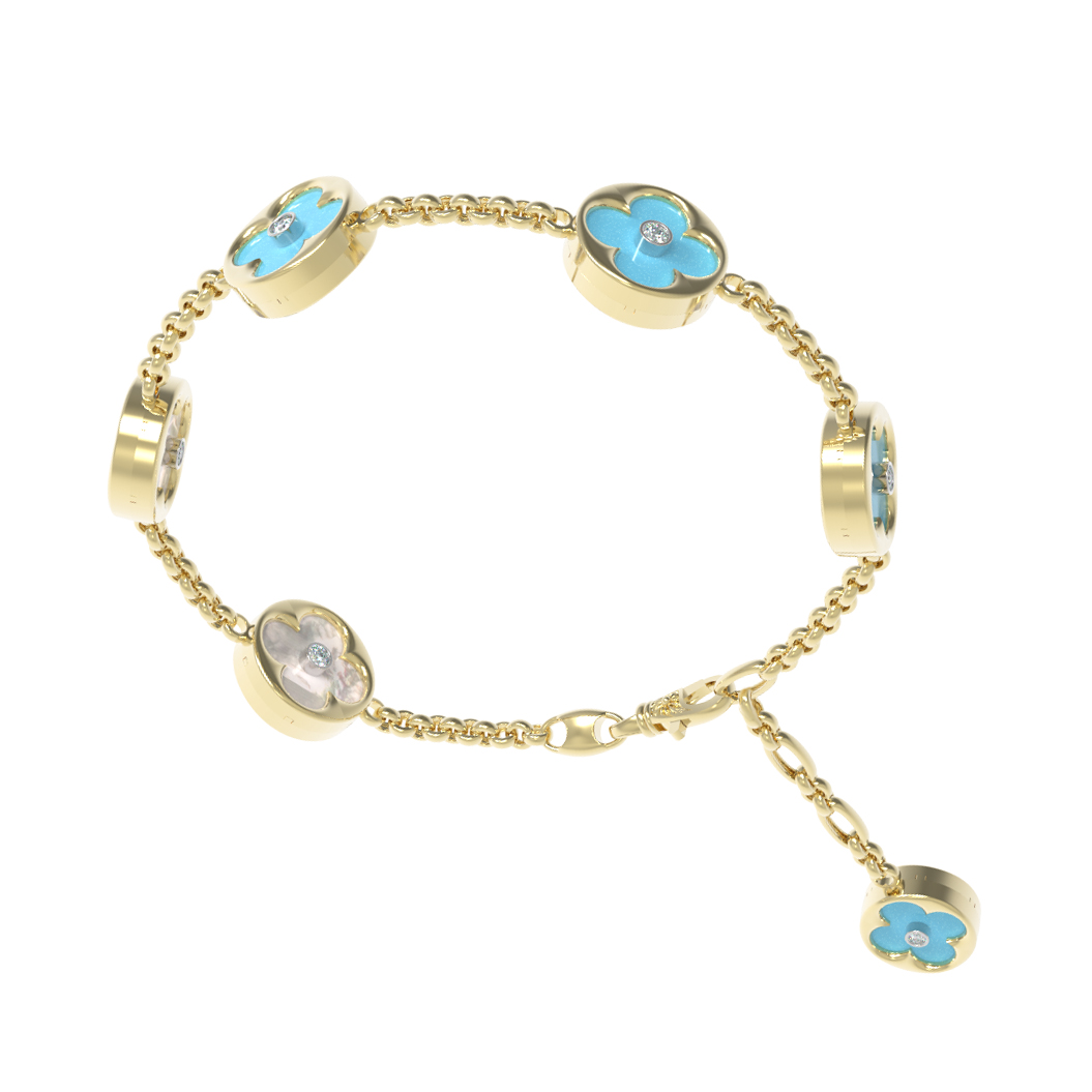 Браслет из лимонного золота c бриллиантами, бирюзой и перламутром