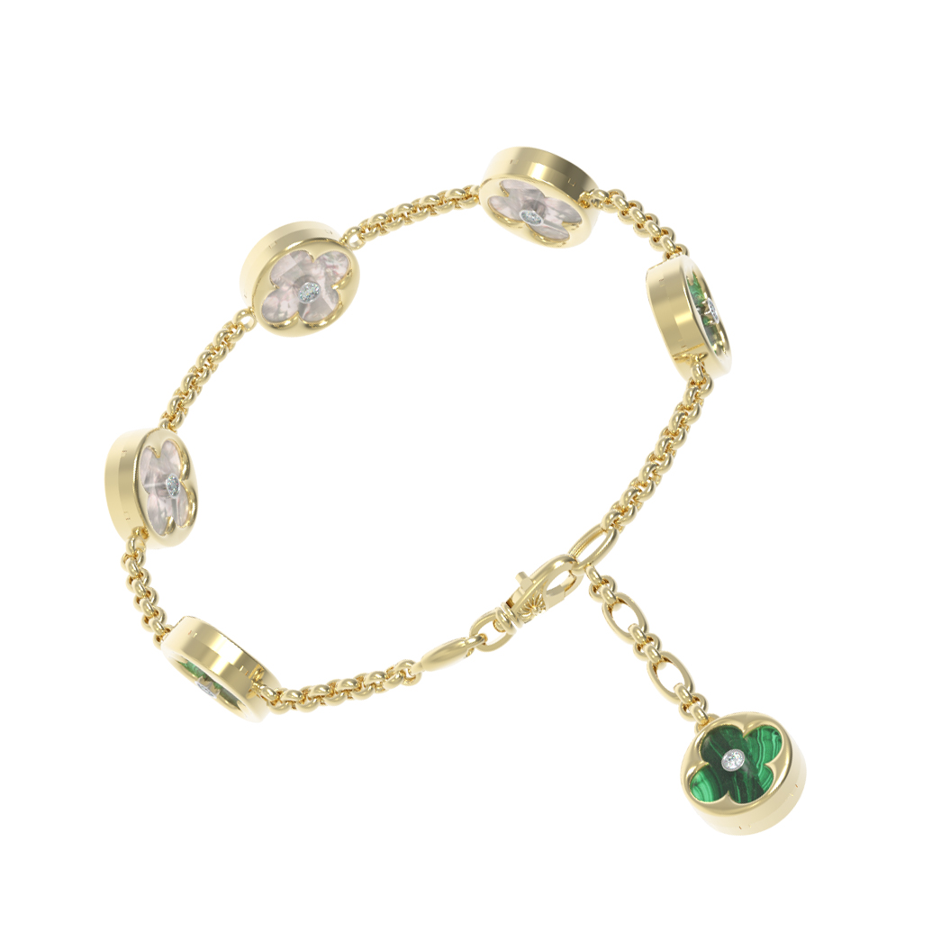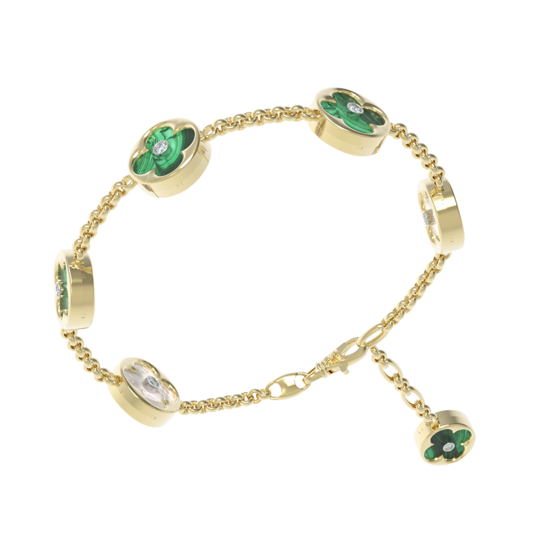 Браслет из лимонного золота c бриллиантами, малахитом и перламутром