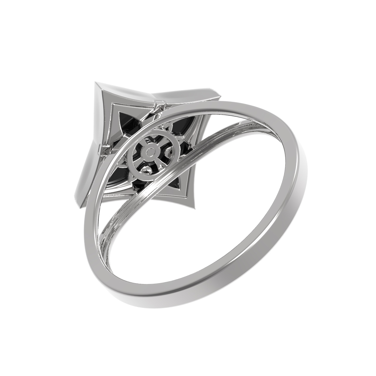 Кольцо из белого золота c бриллиантами и ониксом