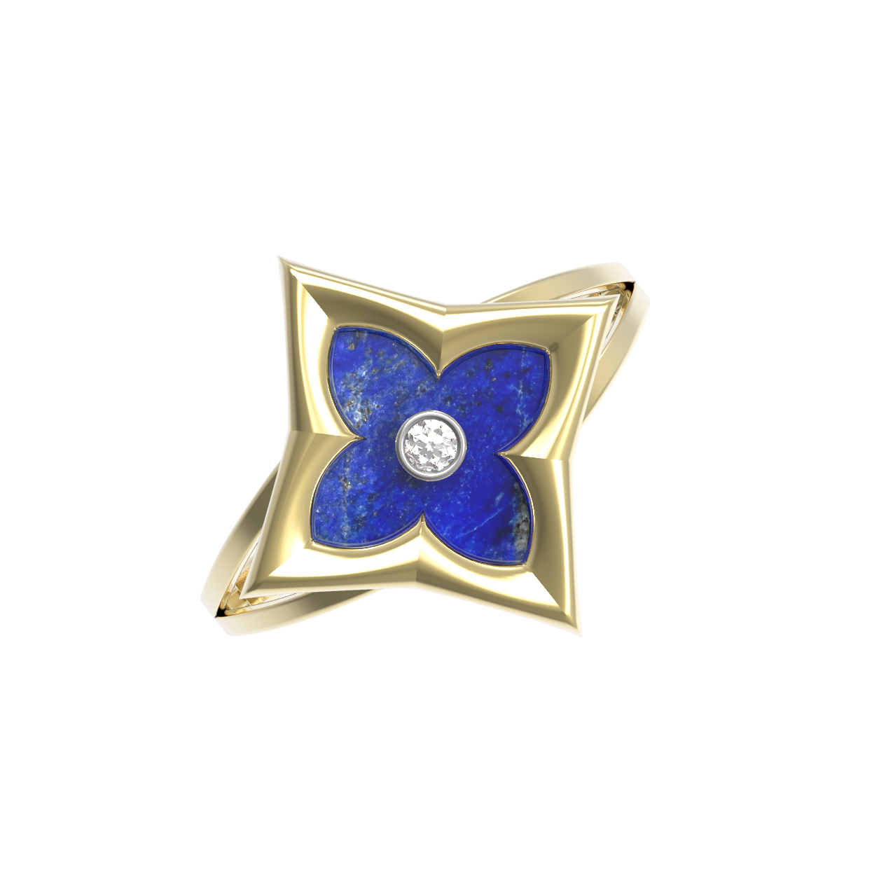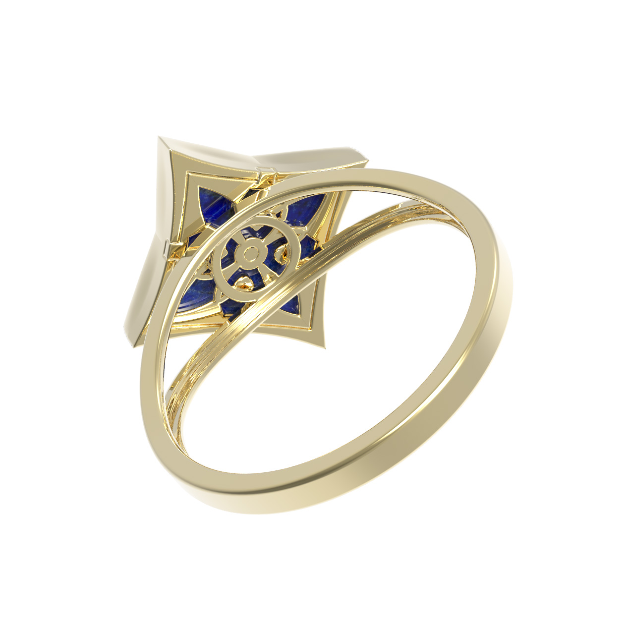 Кольцо из лимонного золота c бриллиантами и лазуритом