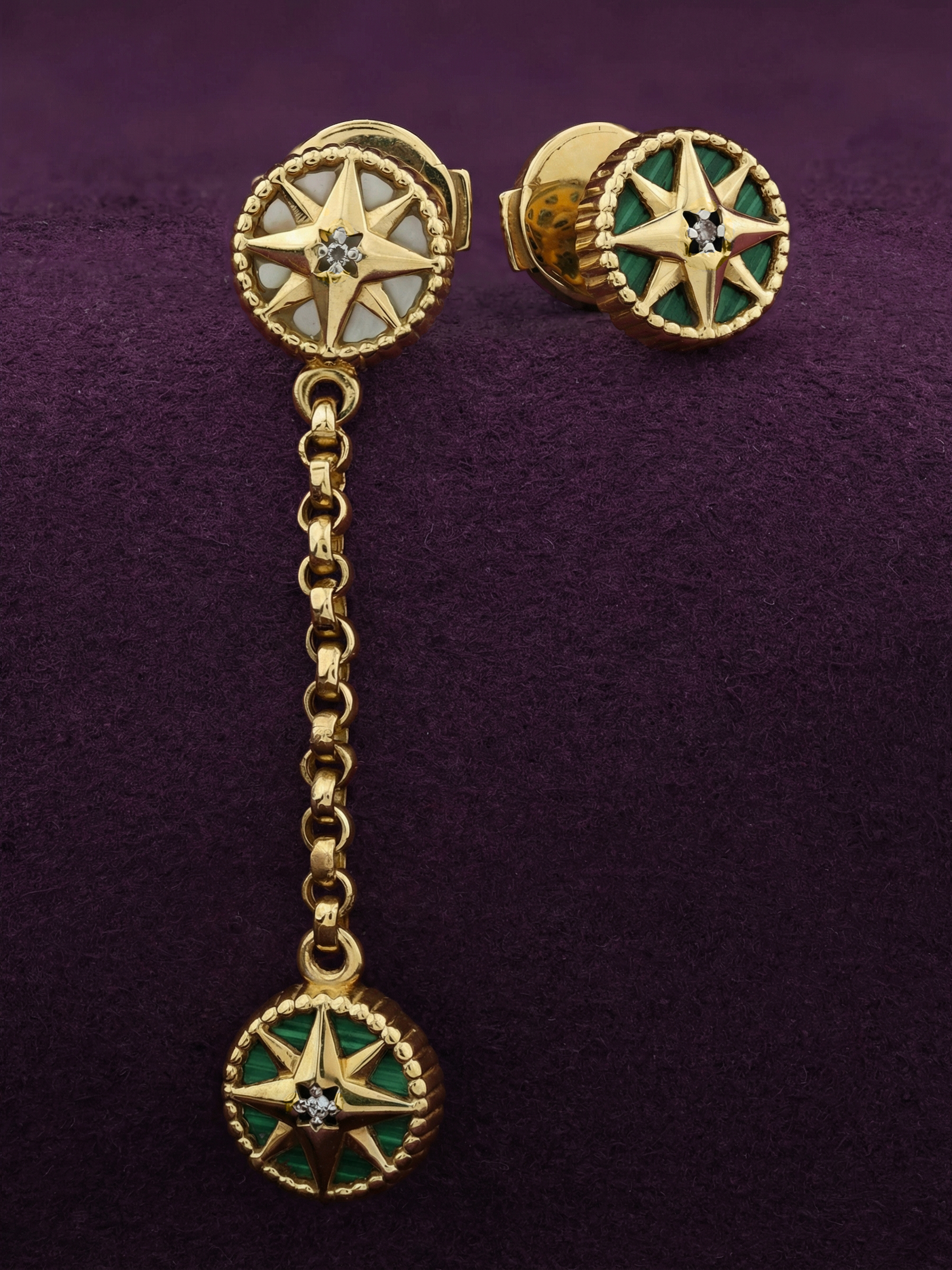 Серьги из лимонного золота c бриллиантами, малахитом и перламутром