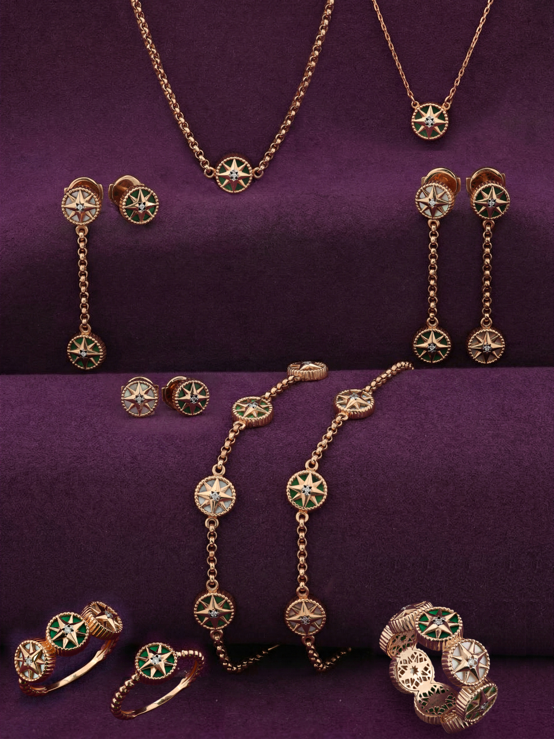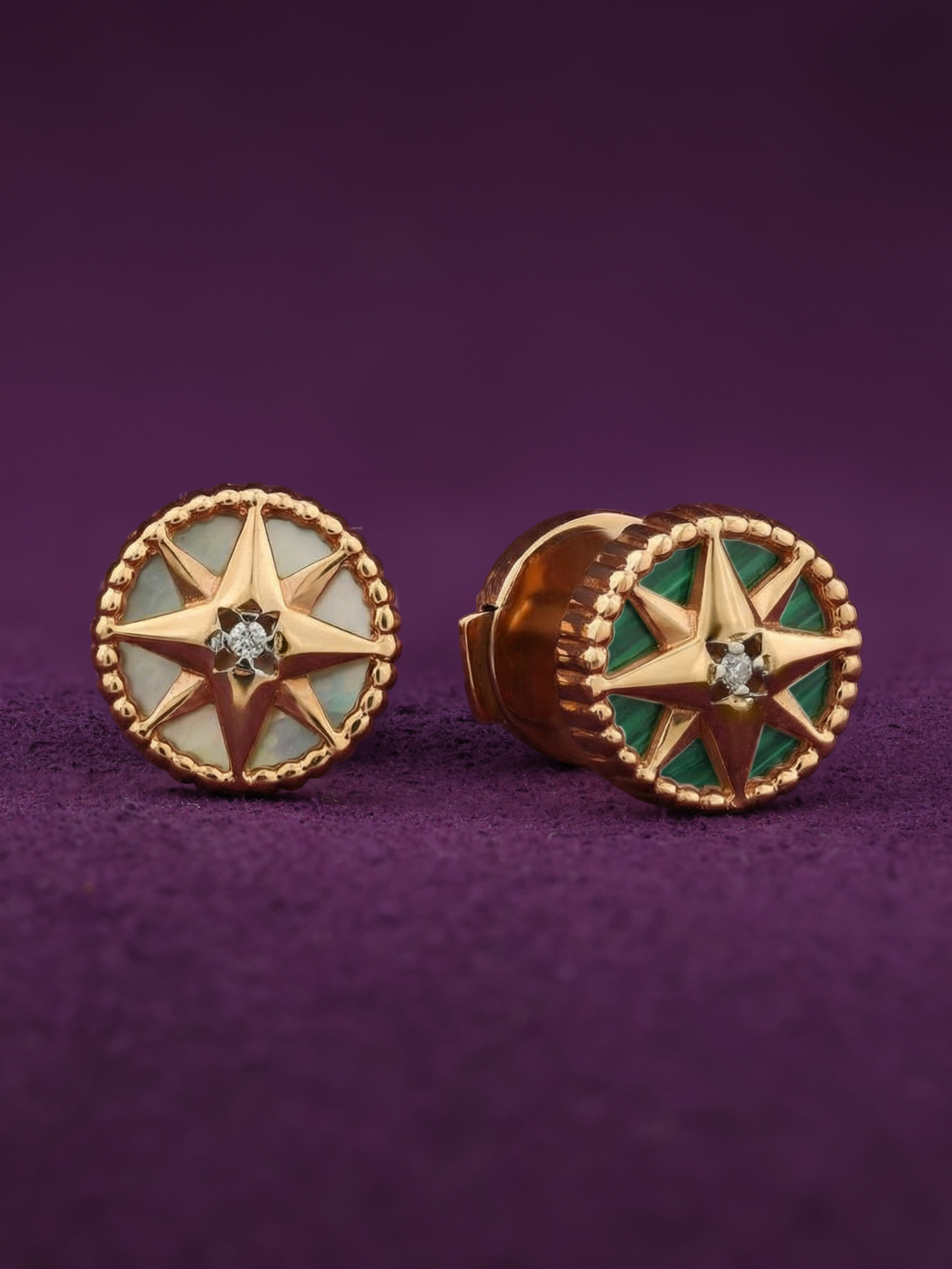Серьги из золота c бриллиантами, малахитом и перламутром