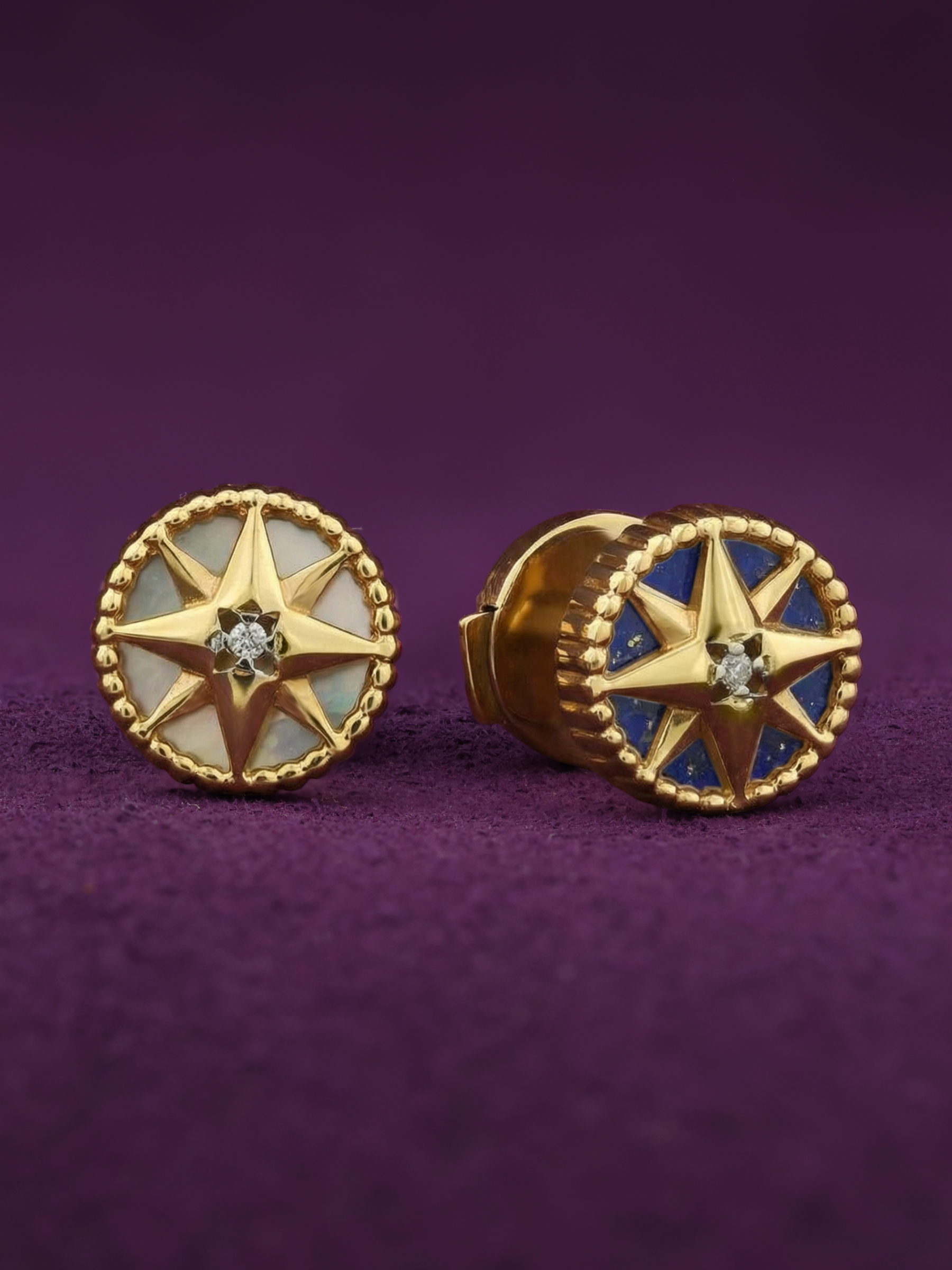 Серьги из лимонного золота c бриллиантами, лазуритом и перламутром
