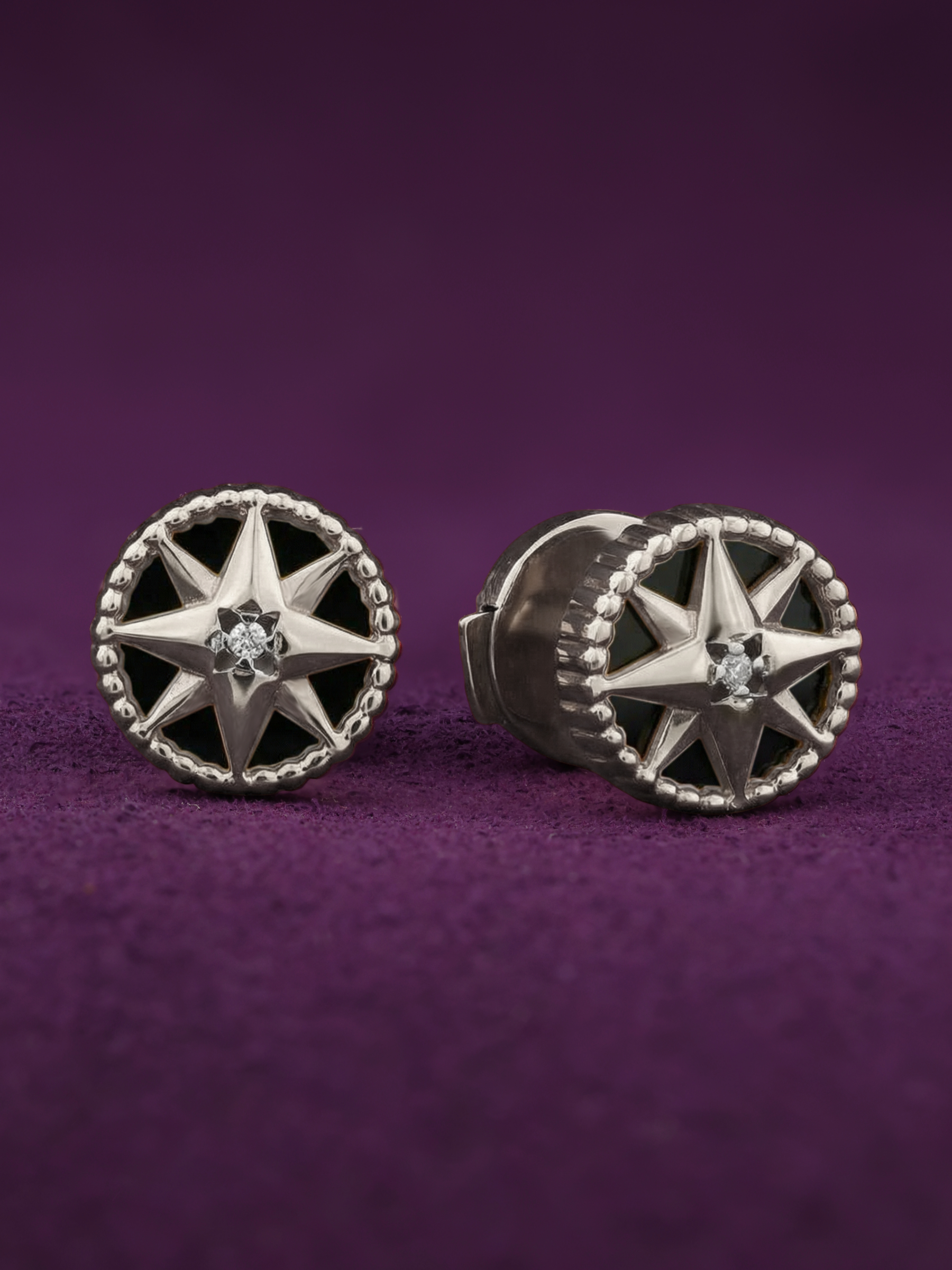 Серьги из белого золота c бриллиантами и ониксом