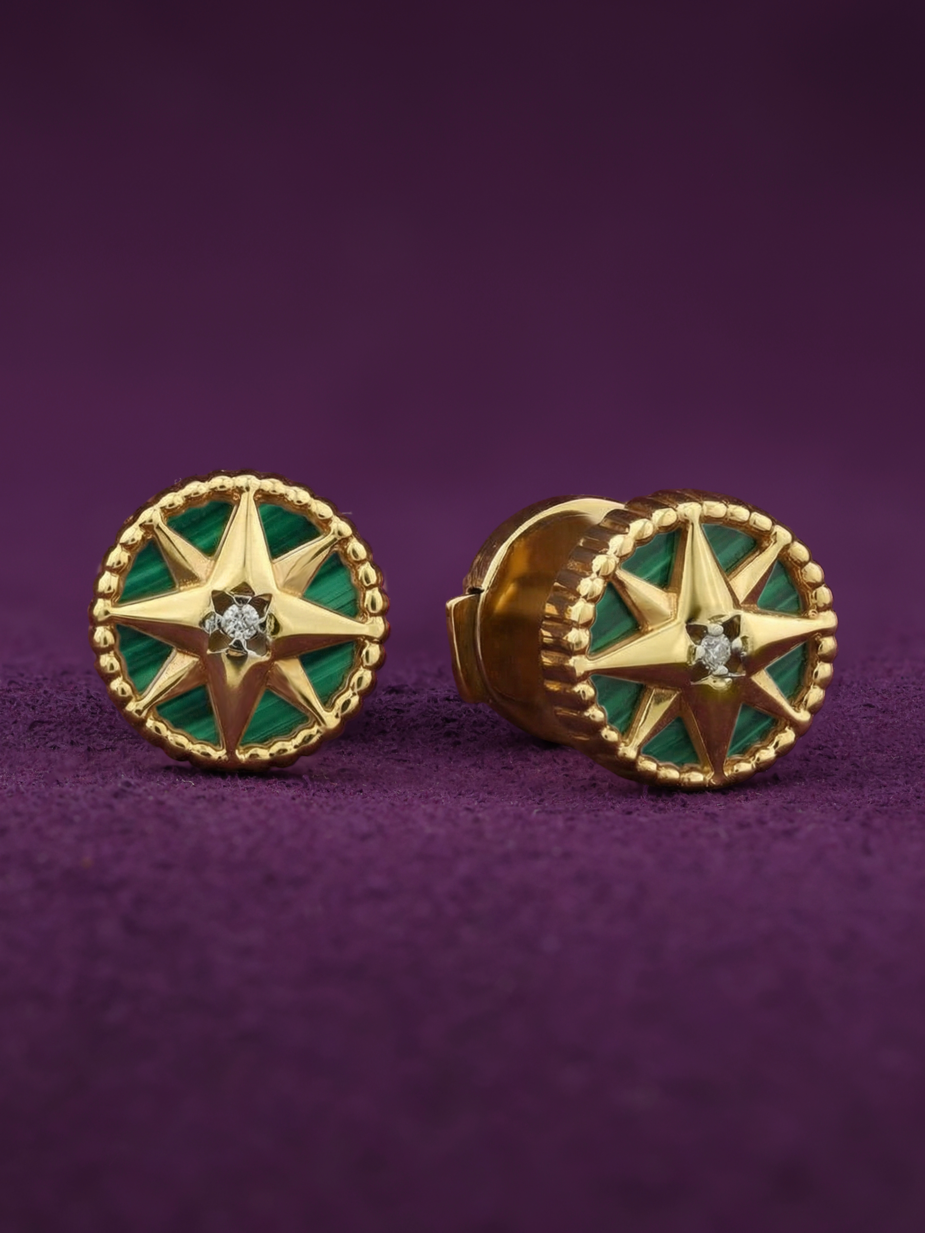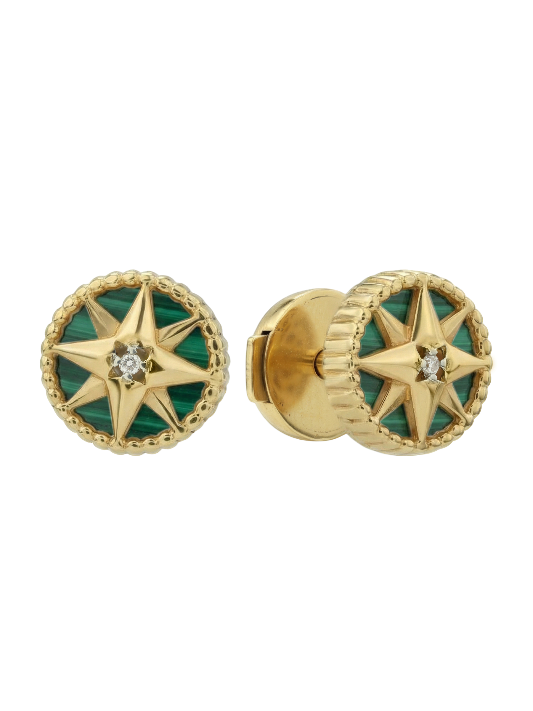 Серьги из лимонного золота c бриллиантами и малахитом