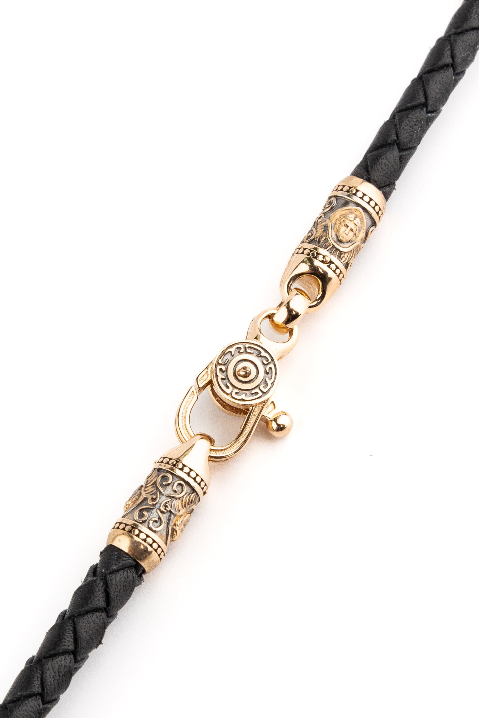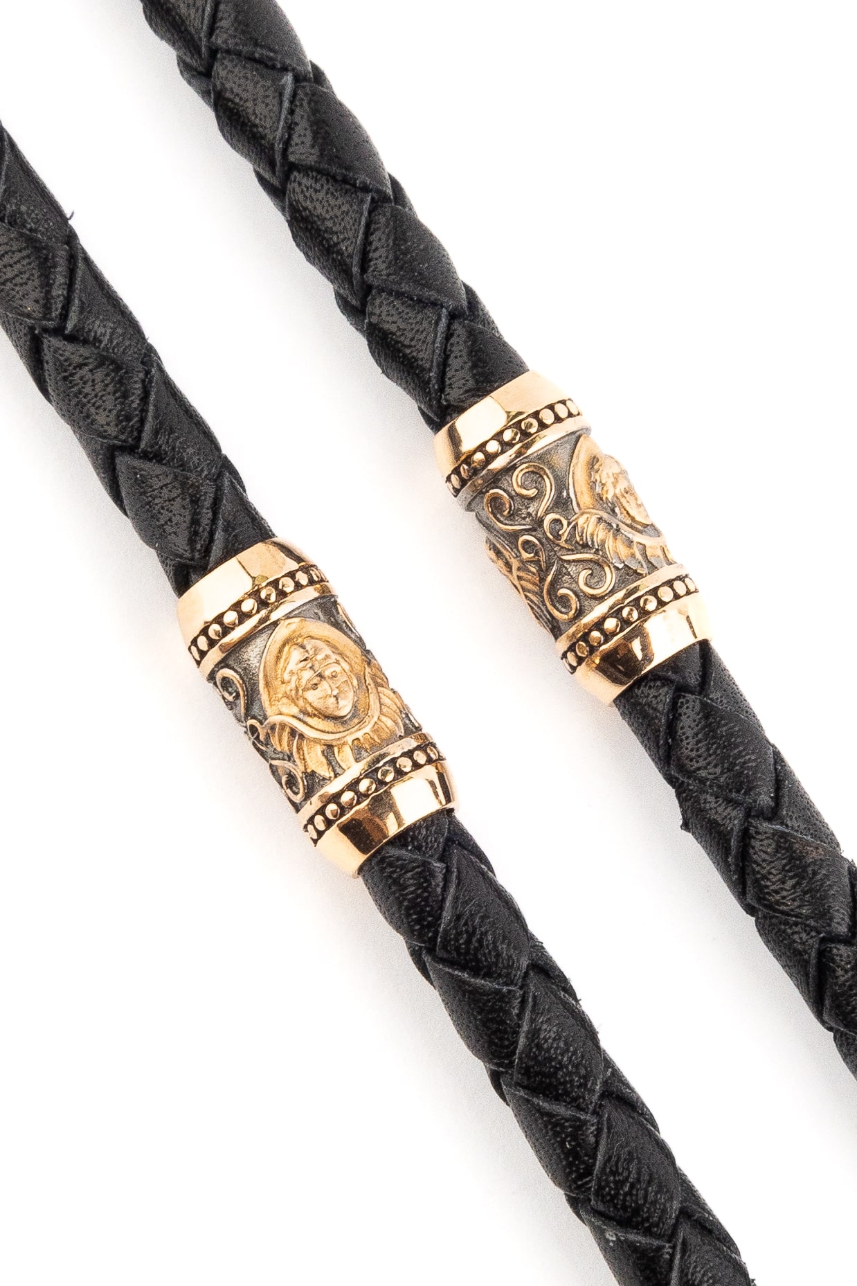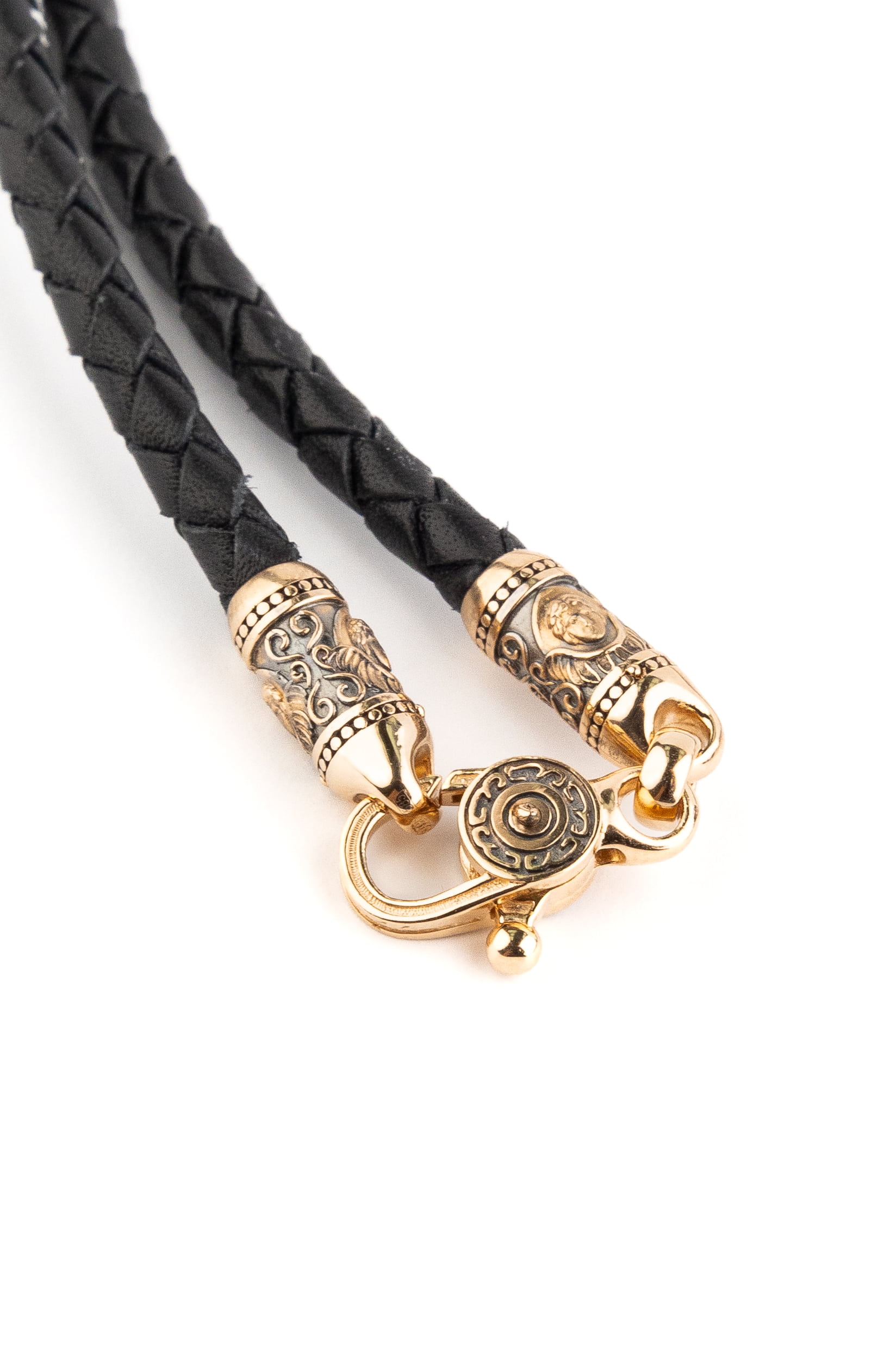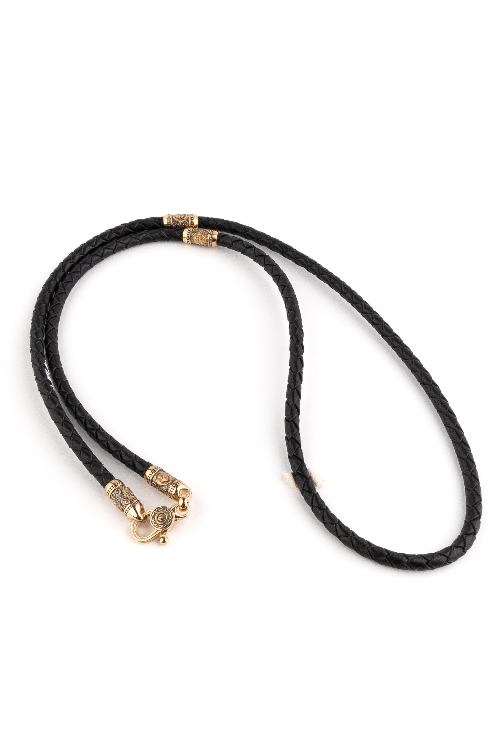 Гайтан из золота c кожаным шнурком