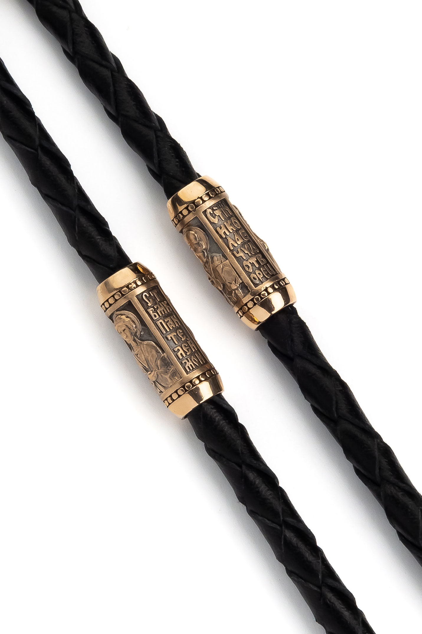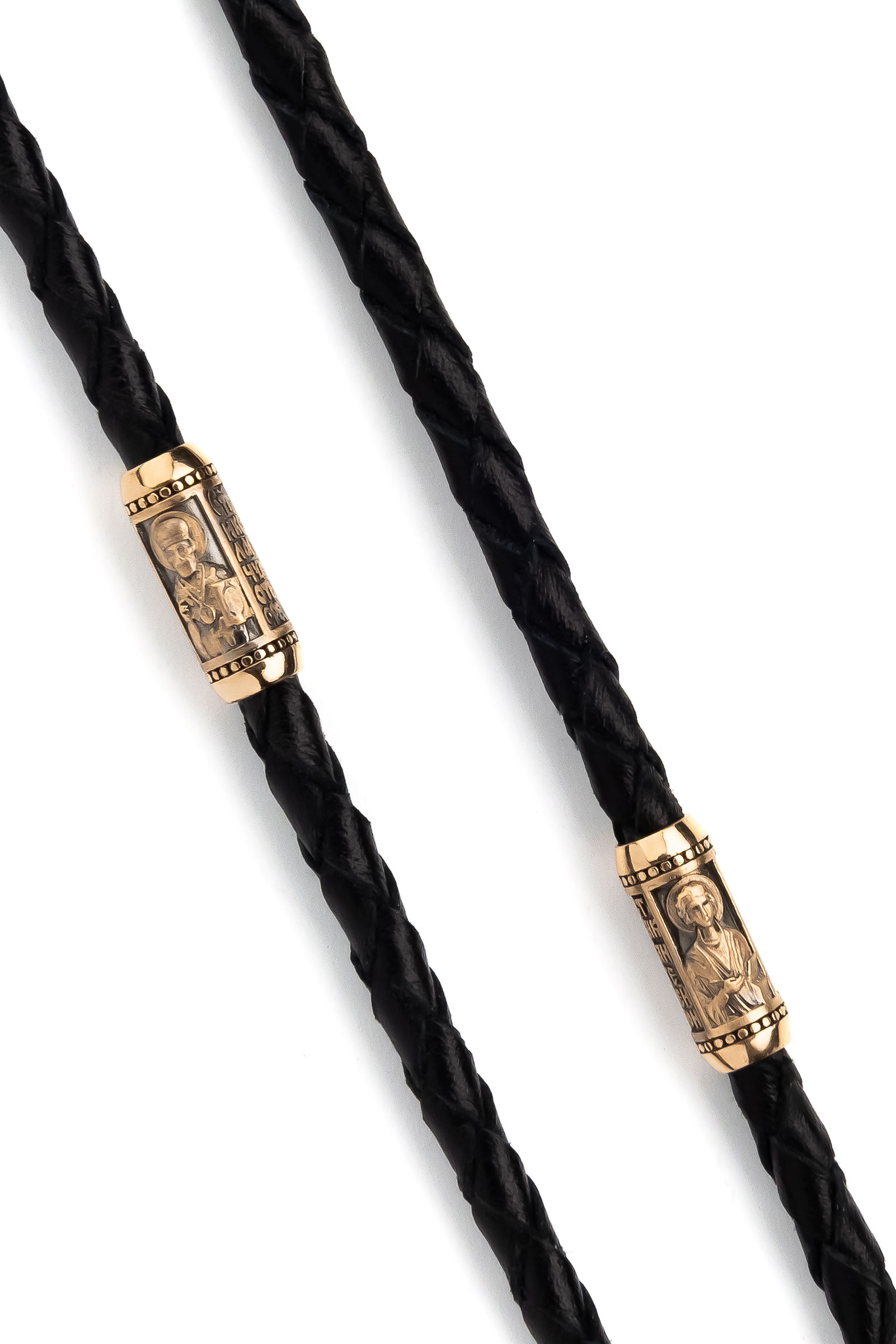 Гайтан из золота c кожаным шнурком