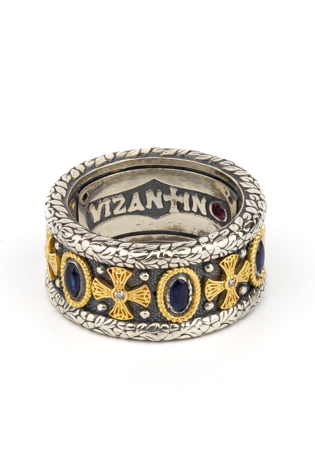 Кольцо из серебра и золота c бриллиантами, сапфиром и рубином