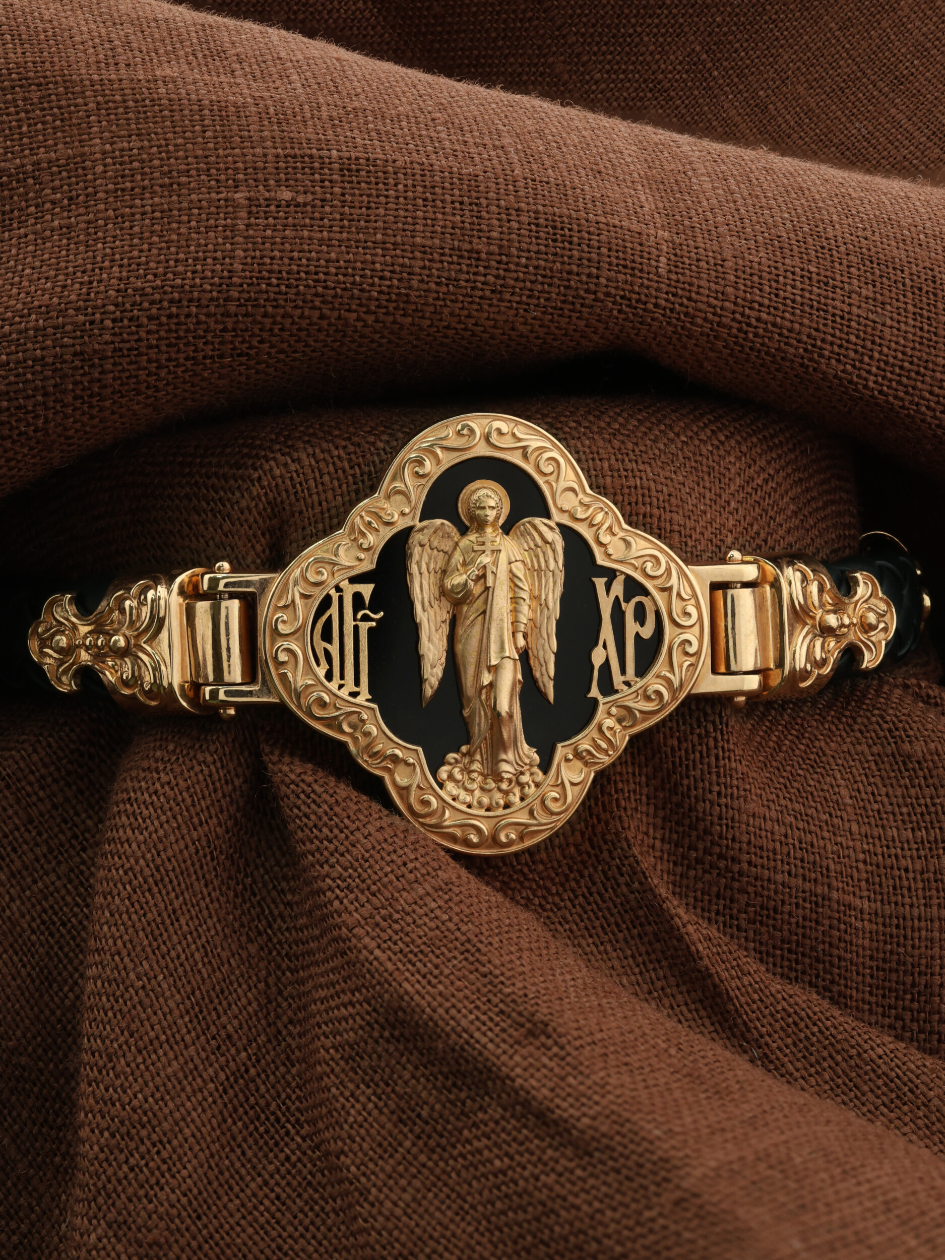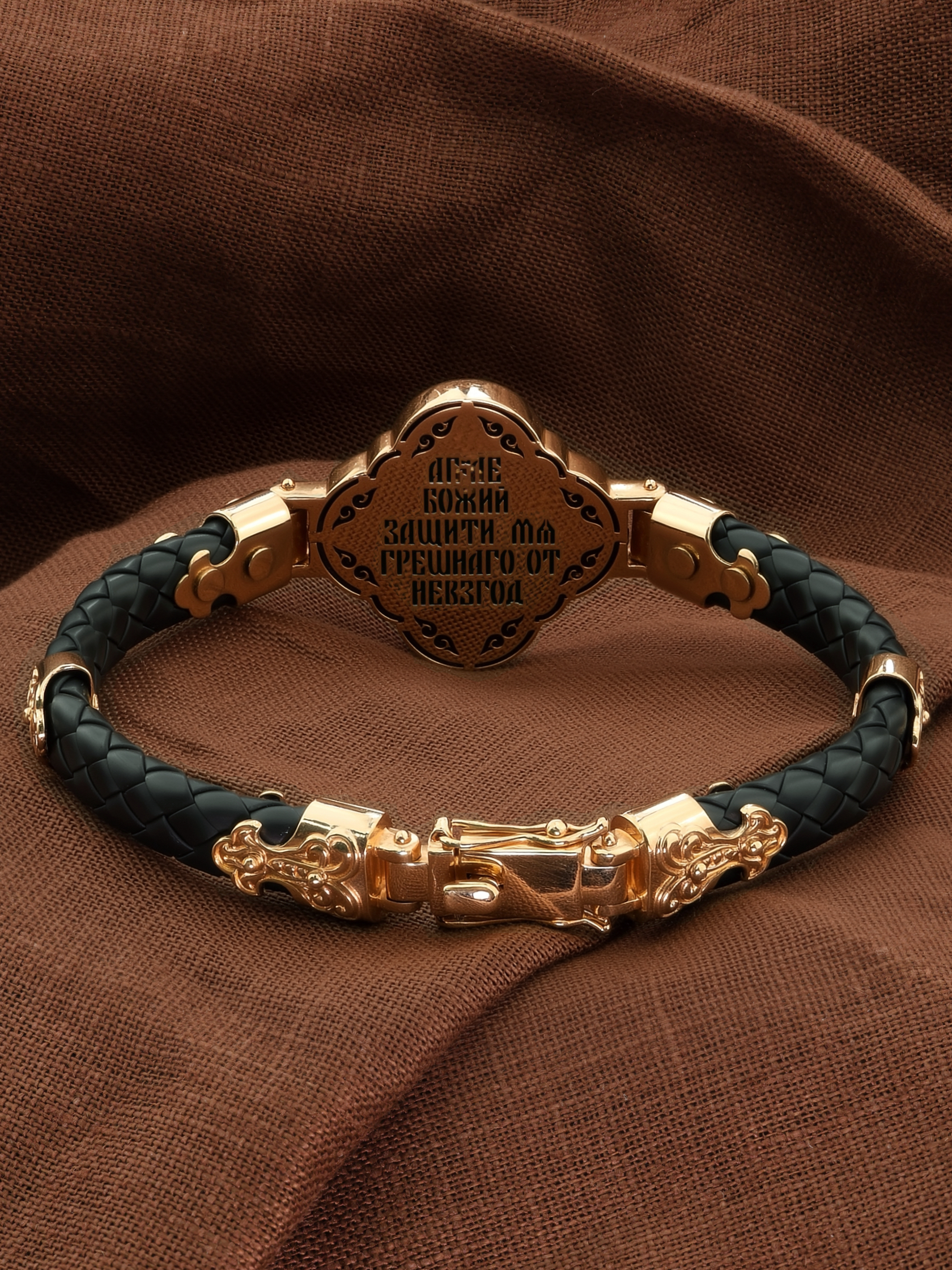 На лицевой стороне основного звена изображён Святой Ангел-Хранитель. Ангел Хранитель — это Ангел приставляемый Богом к человеку при крещении для охраны и помощи в добрых делах. Он невидимо находится при человеке на протяжении всей его жизни, если человек сохраняет в себе любовь к Богу и истинную веру перед Ним. Ангел-Xранитель делают для нас все, что служит к истинному нашему благу и спасению. Невидимо пребывая при нас постоянно, он, руководствуя нас ко спасению, не только по нашему желанию таинственно наставляет нас на все доброе и полезное, не только возносит наши молитвы к Богу, но еще и сам от себя охраняют и защищают нас от врагов видимых и невидимых и ходатайствует за нас пред Богом. Ангел-Хранитель так любит нас, как никто на земле любить не может. Ангел-Хранитель — присный друг наш, незримый тихий собеседник, пресладостный утешитель. Одного лишь каждому из нас он желает — спасения души; к этому он направляет все свои заботы. И если видит нас также заботящимися о спасении, радуется, если же видит нас пребывающими в нерадении о душе своей, скорбит.