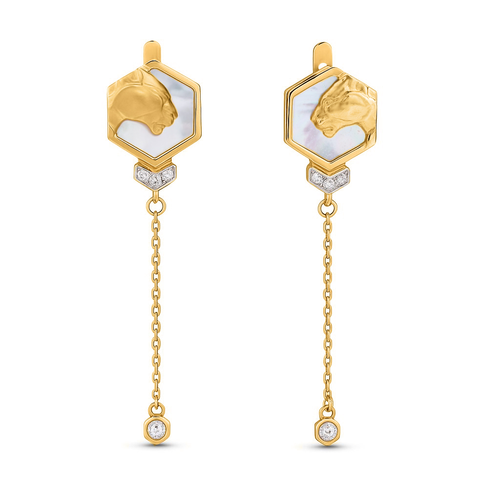 Серьги из лимонного золота c бриллиантами и перламутром