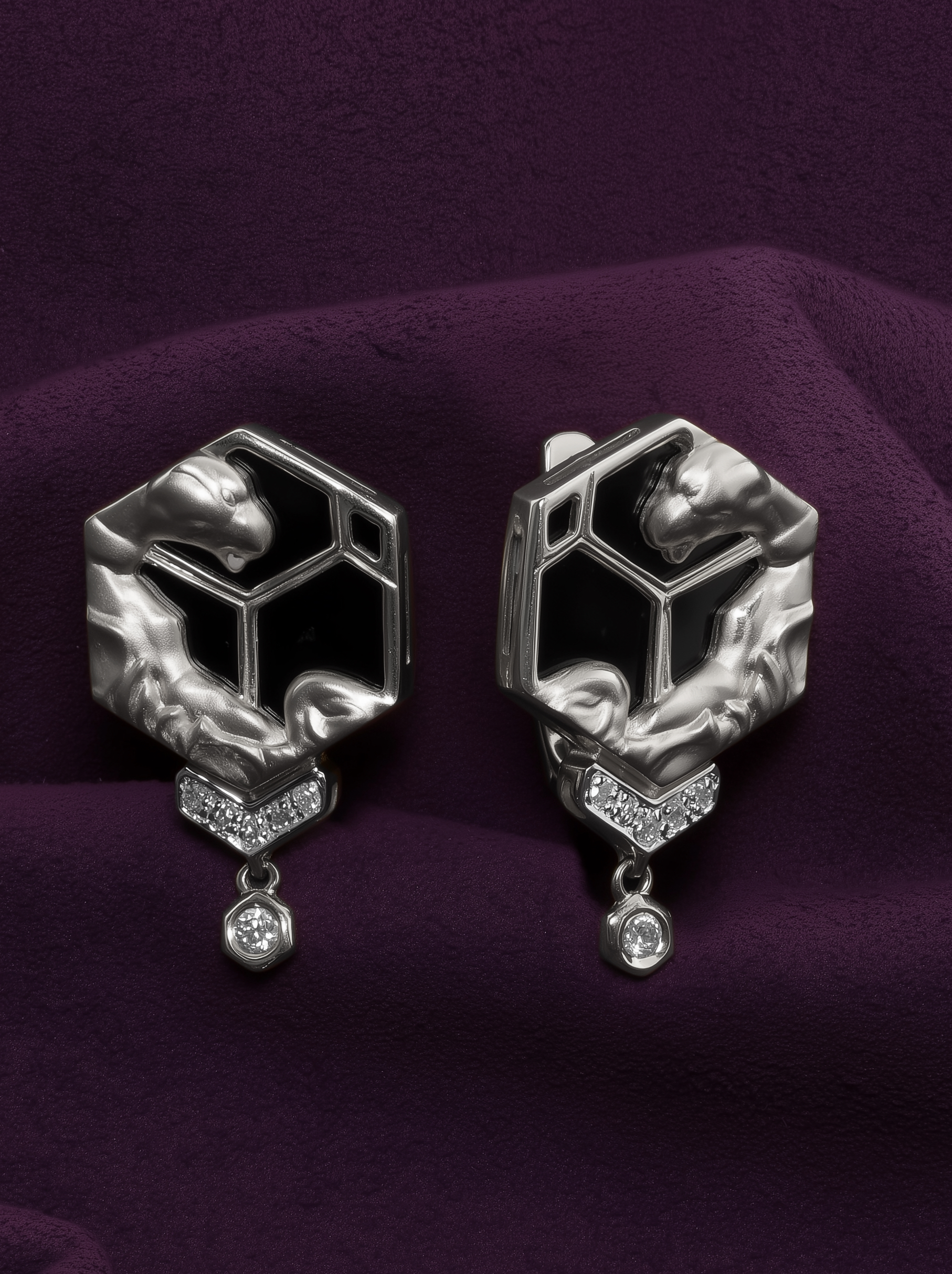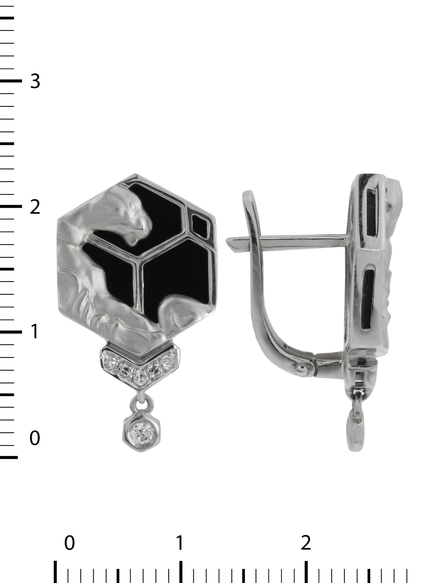 Серьги из белого золота c бриллиантами и ониксом