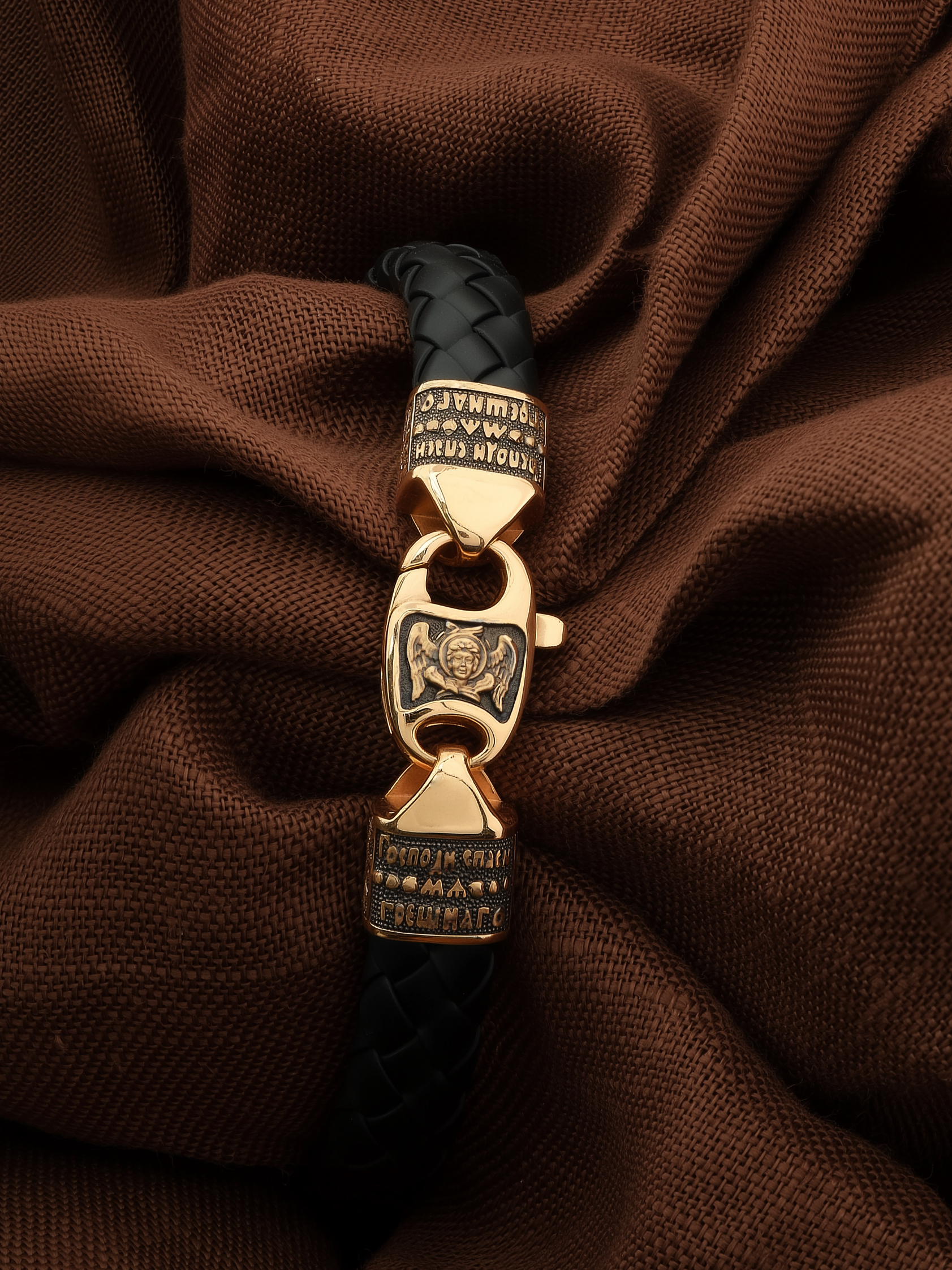 На основном звене браслета написана молитва: «Живый в помощи Вышняго, в крове Бога Небеснаго водворится. Речет Господеви: Заступник мой еси и Прибежище мое, Бог мой, и уповаю на Него.»