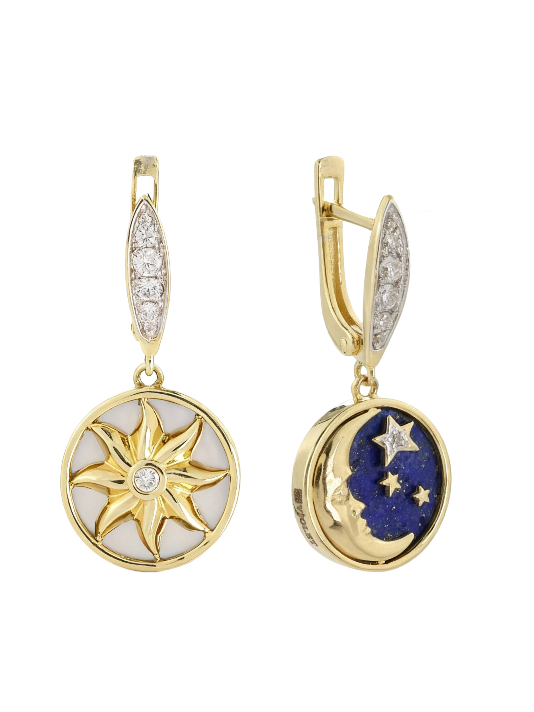 Серьги из лимонного золота c бриллиантами, лазуритом и перламутром