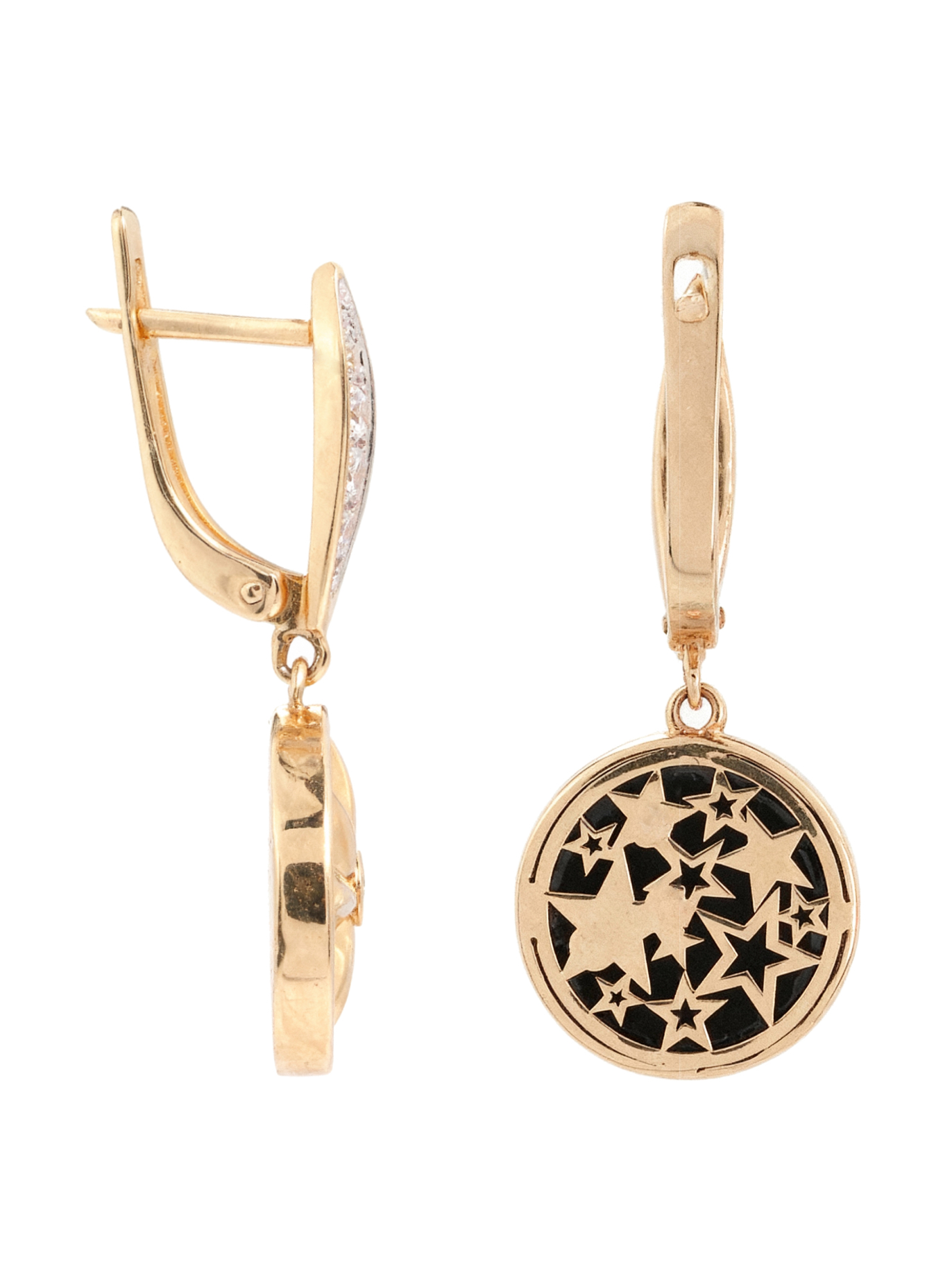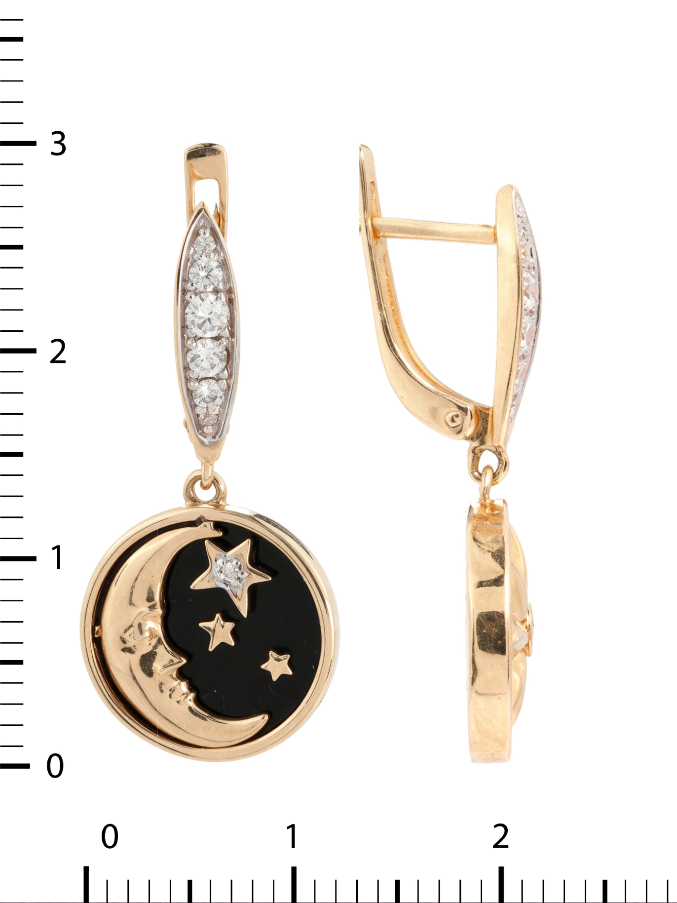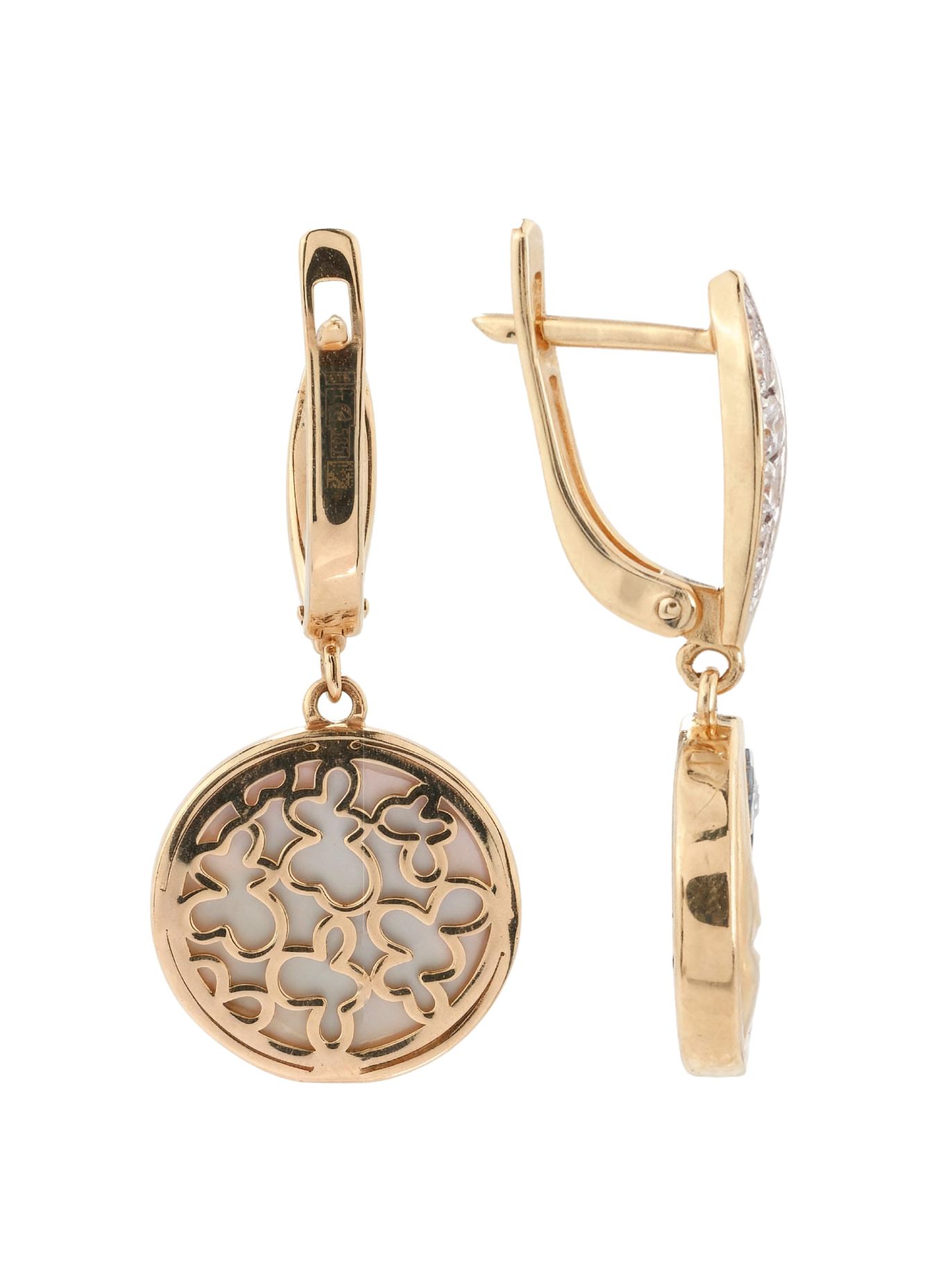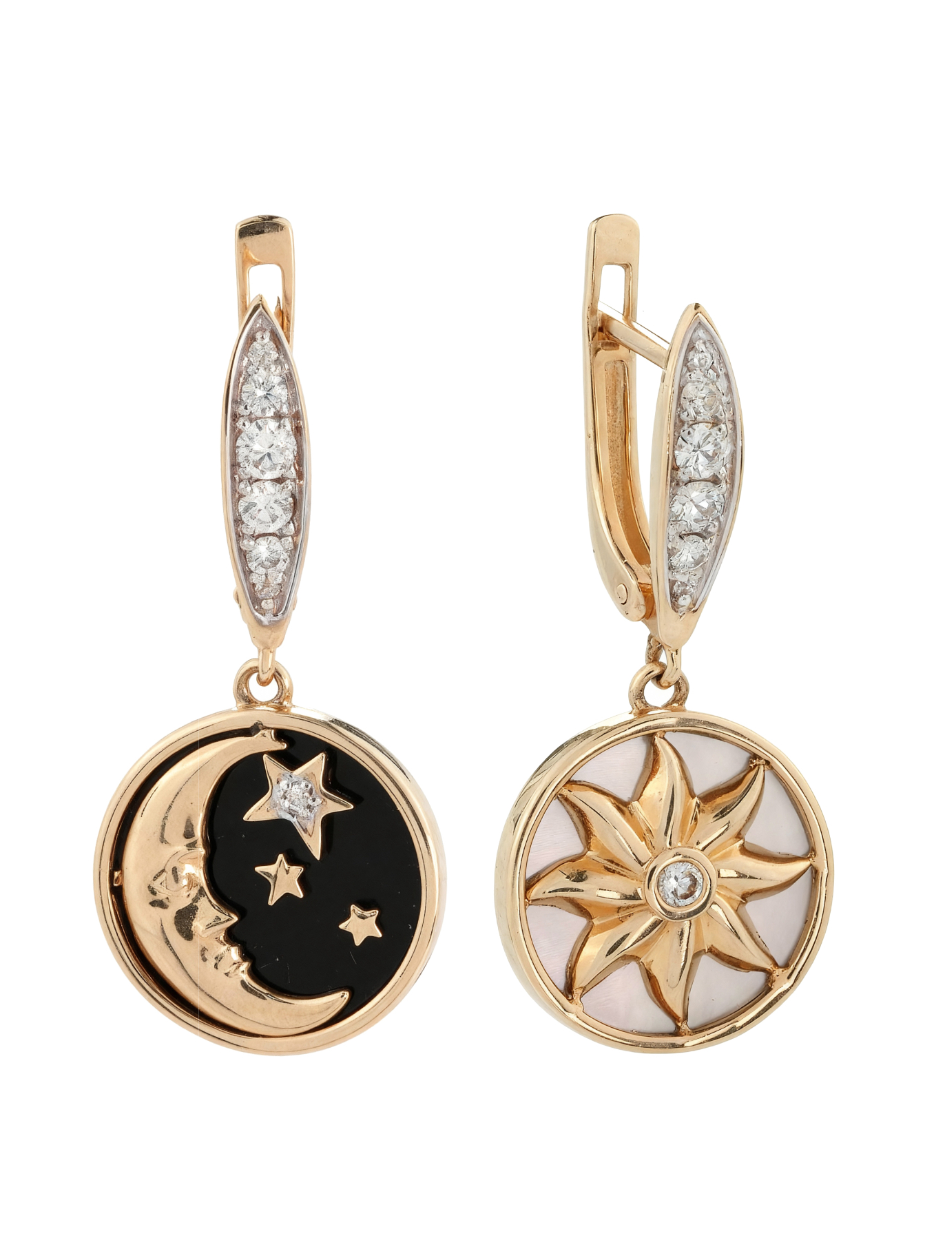 Серьги из золота c бриллиантами, ониксом и перламутром