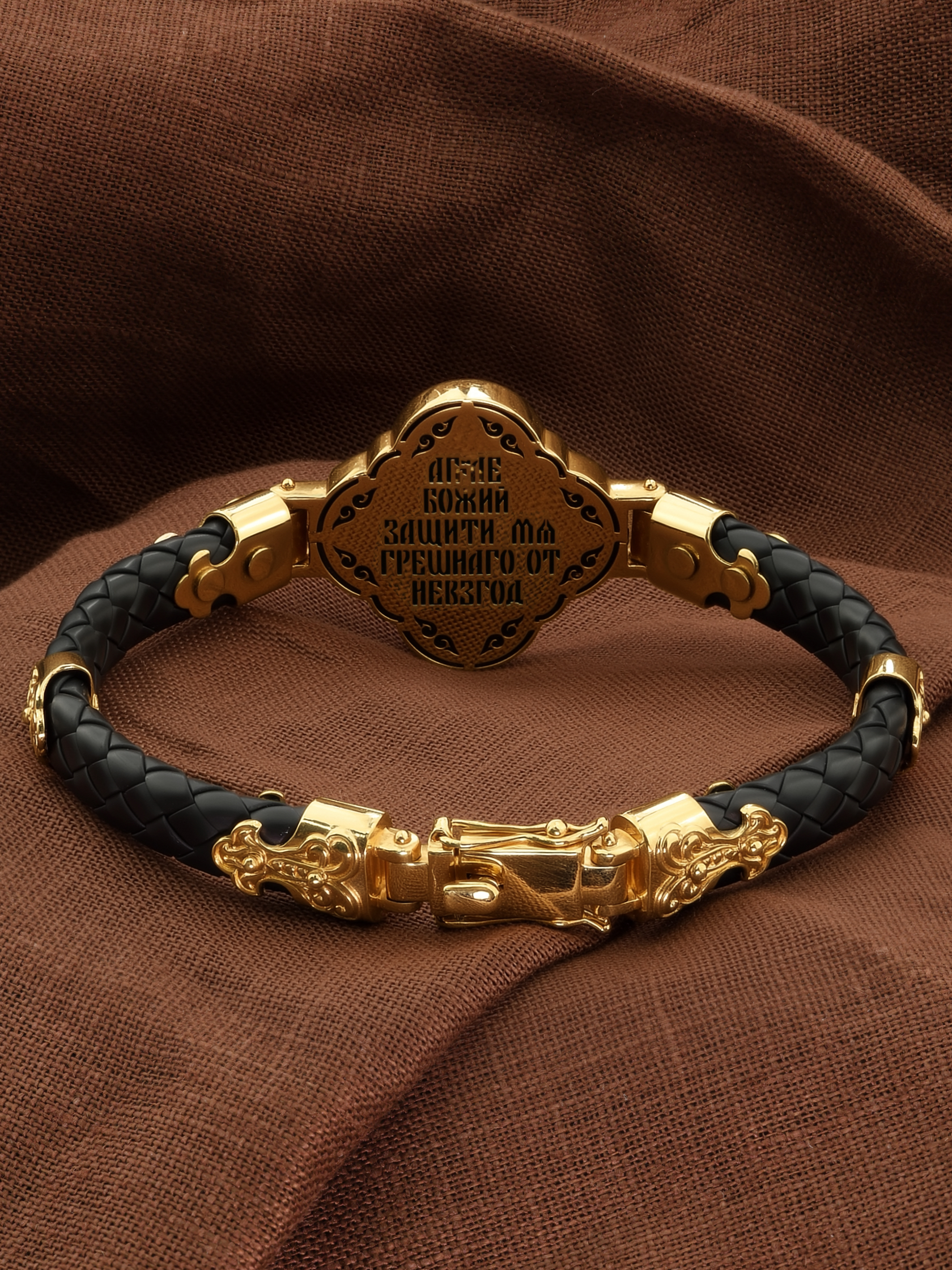 На лицевой стороне основного звена изображён Святой Ангел-Хранитель. Ангел Хранитель — это Ангел приставляемый Богом к человеку при крещении для охраны и помощи в добрых делах. Он невидимо находится при человеке на протяжении всей его жизни, если человек сохраняет в себе любовь к Богу и истинную веру перед Ним. Ангел-Xранитель делают для нас все, что служит к истинному нашему благу и спасению. Невидимо пребывая при нас постоянно, он, руководствуя нас ко спасению, не только по нашему желанию таинственно наставляет нас на все доброе и полезное, не только возносит наши молитвы к Богу, но еще и сам от себя охраняют и защищают нас от врагов видимых и невидимых и ходатайствует за нас пред Богом. Ангел-Хранитель так любит нас, как никто на земле любить не может. Ангел-Хранитель — присный друг наш, незримый тихий собеседник, пресладостный утешитель. Одного лишь каждому из нас он желает — спасения души; к этому он направляет все свои заботы. И если видит нас также заботящимися о спасении, радуется, если же видит нас пребывающими в нерадении о душе своей, скорбит.
