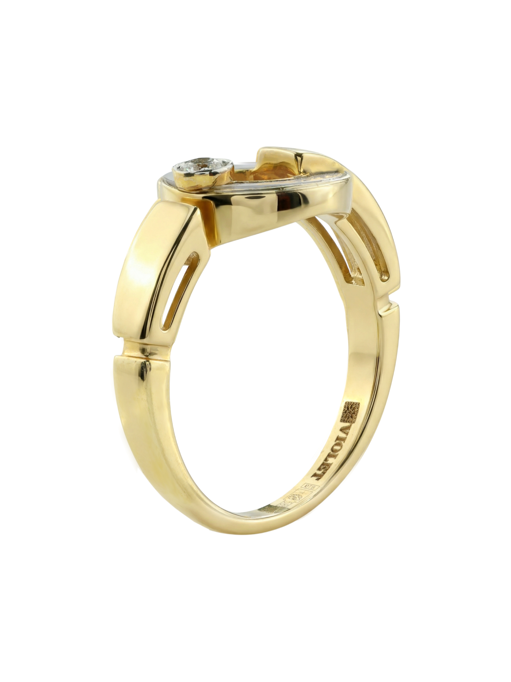 Кольцо из лимонного золота c бриллиантами и перламутром