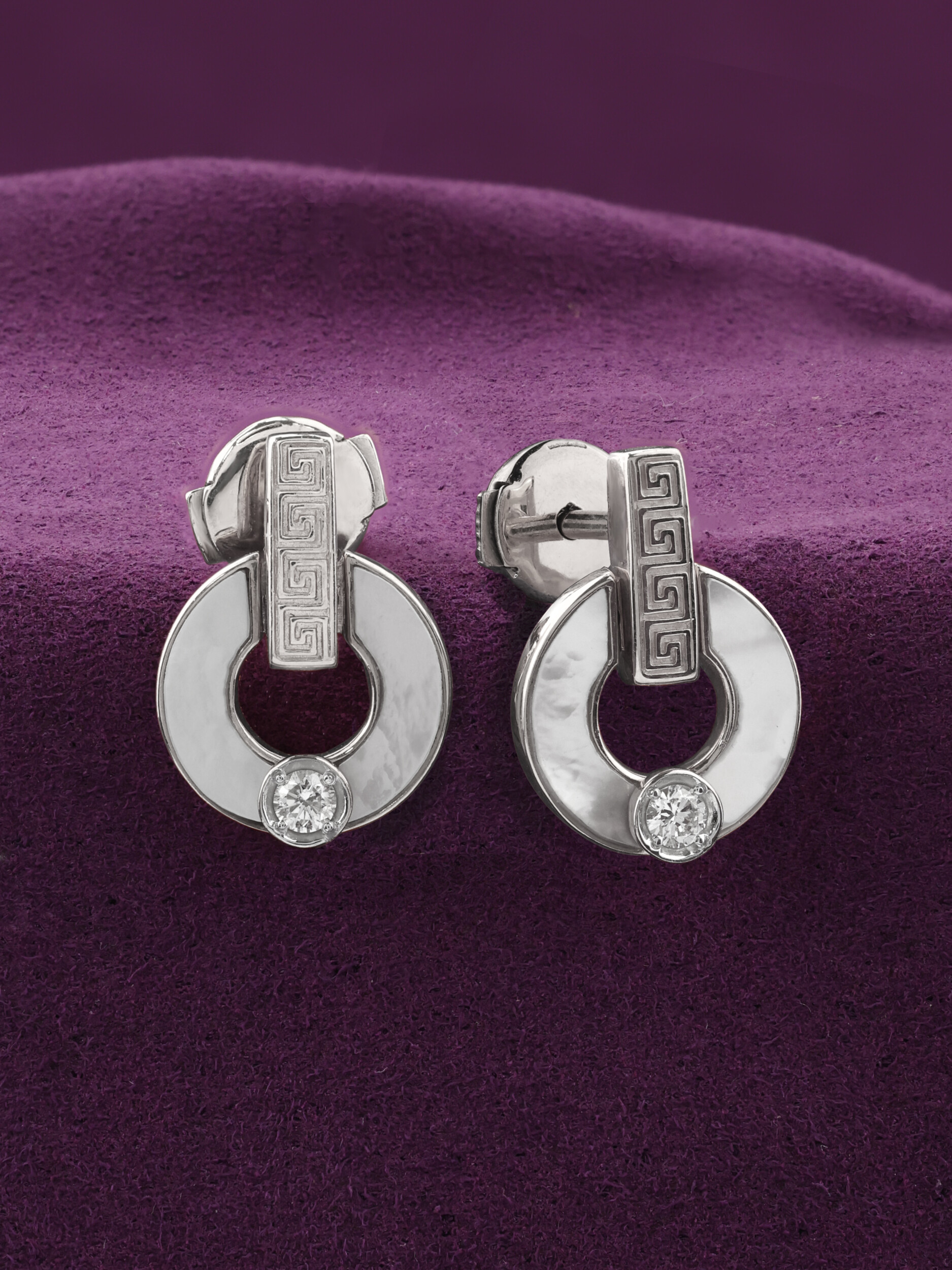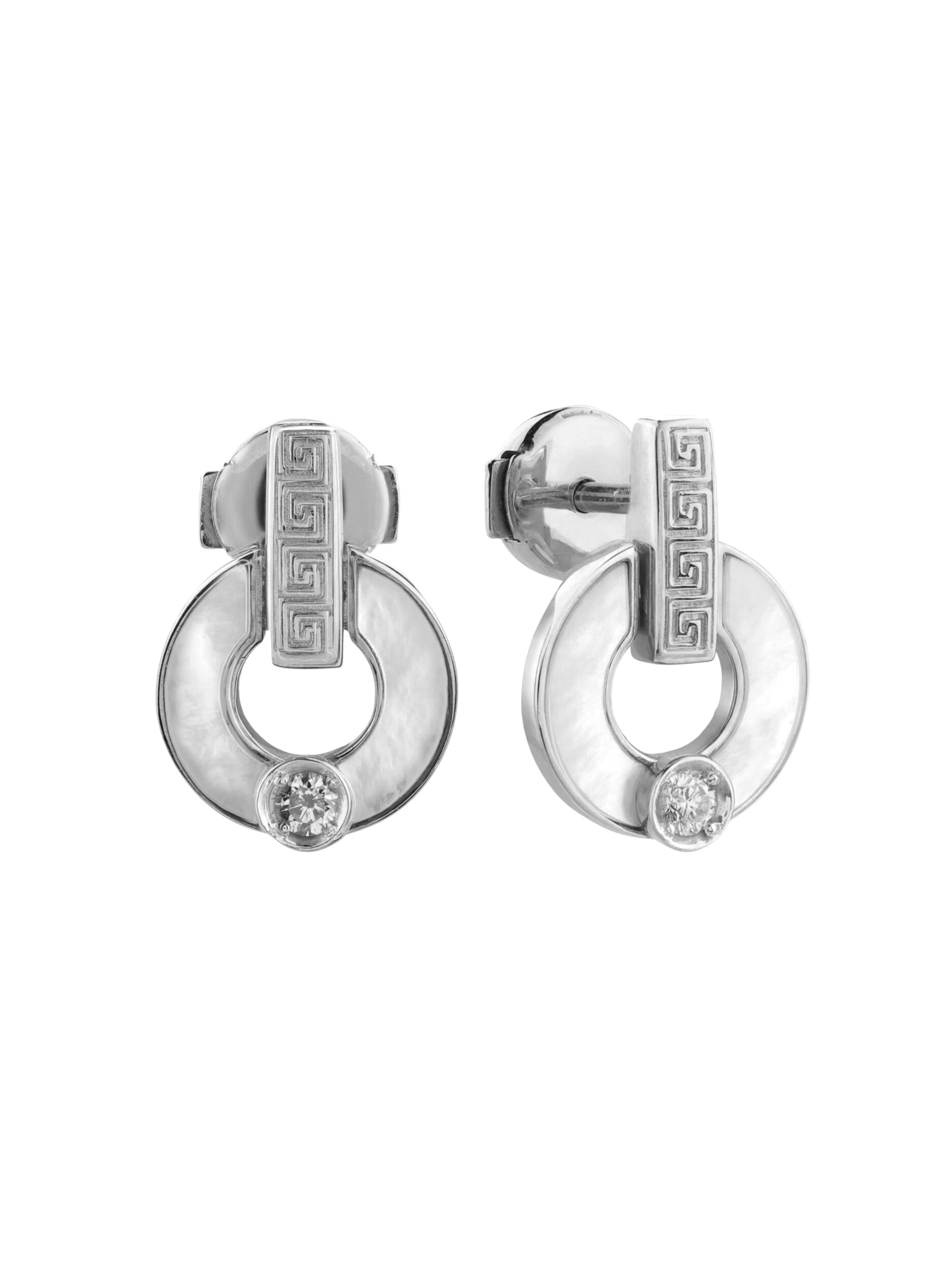 Серьги из белого золота c бриллиантами и перламутром