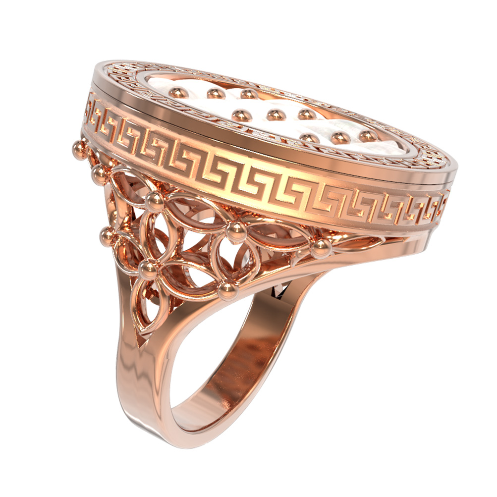 Кольцо из золота c эмалью и перламутром