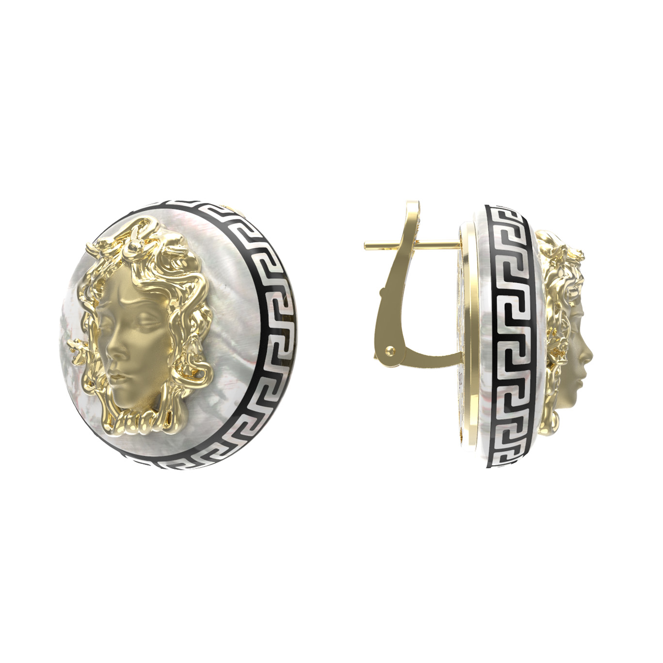 Серьги из лимонного золота c эмалью и перламутром