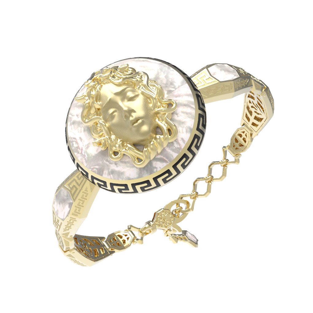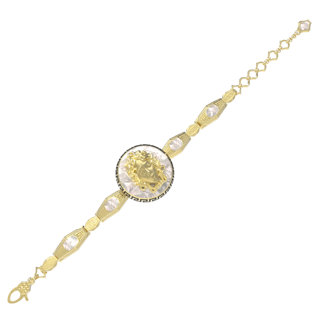 Браслет из лимонного золота c эмалью и перламутром