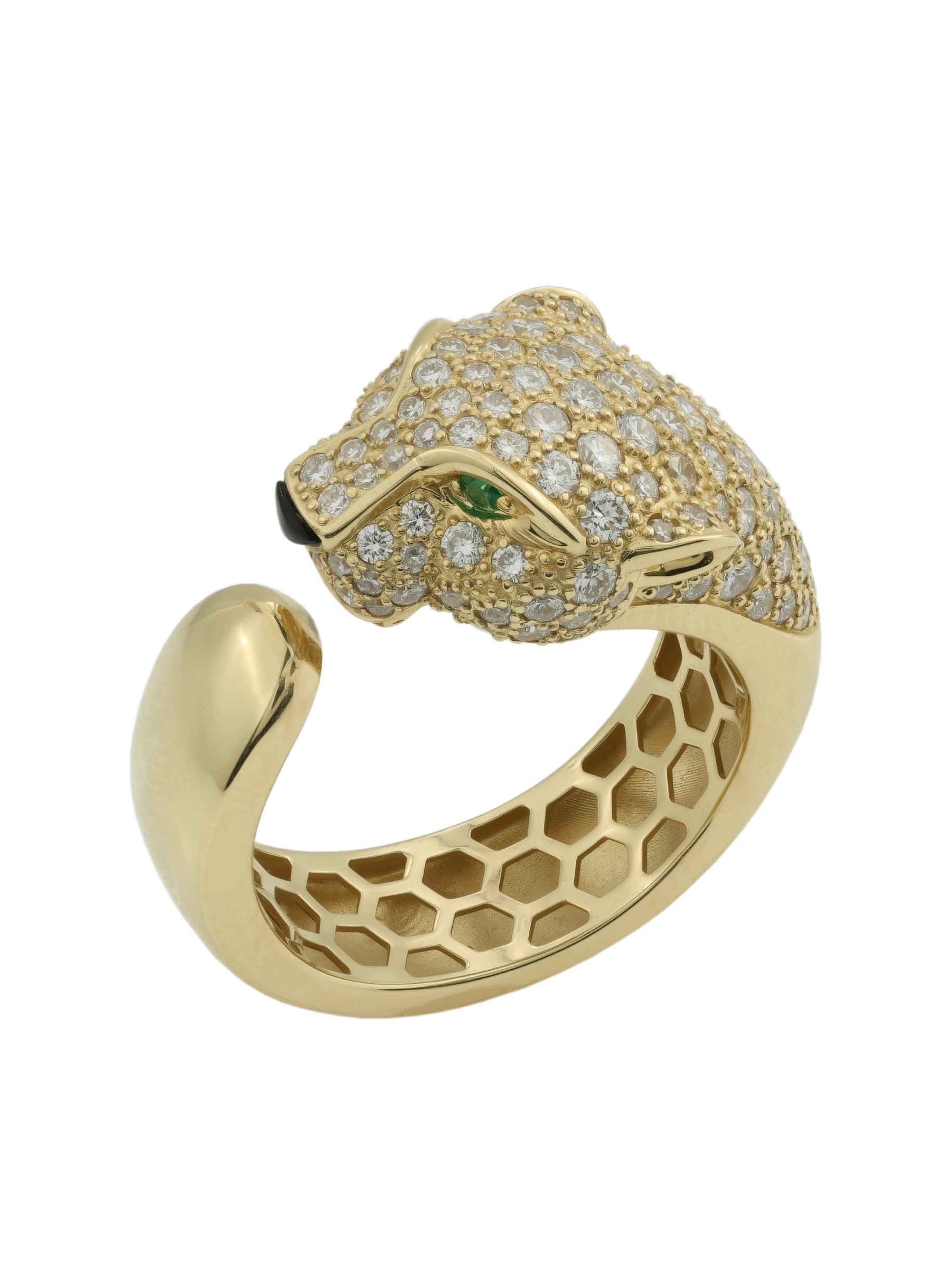 Кольцо из лимонного золота c бриллиантами, изумрудом и ониксом