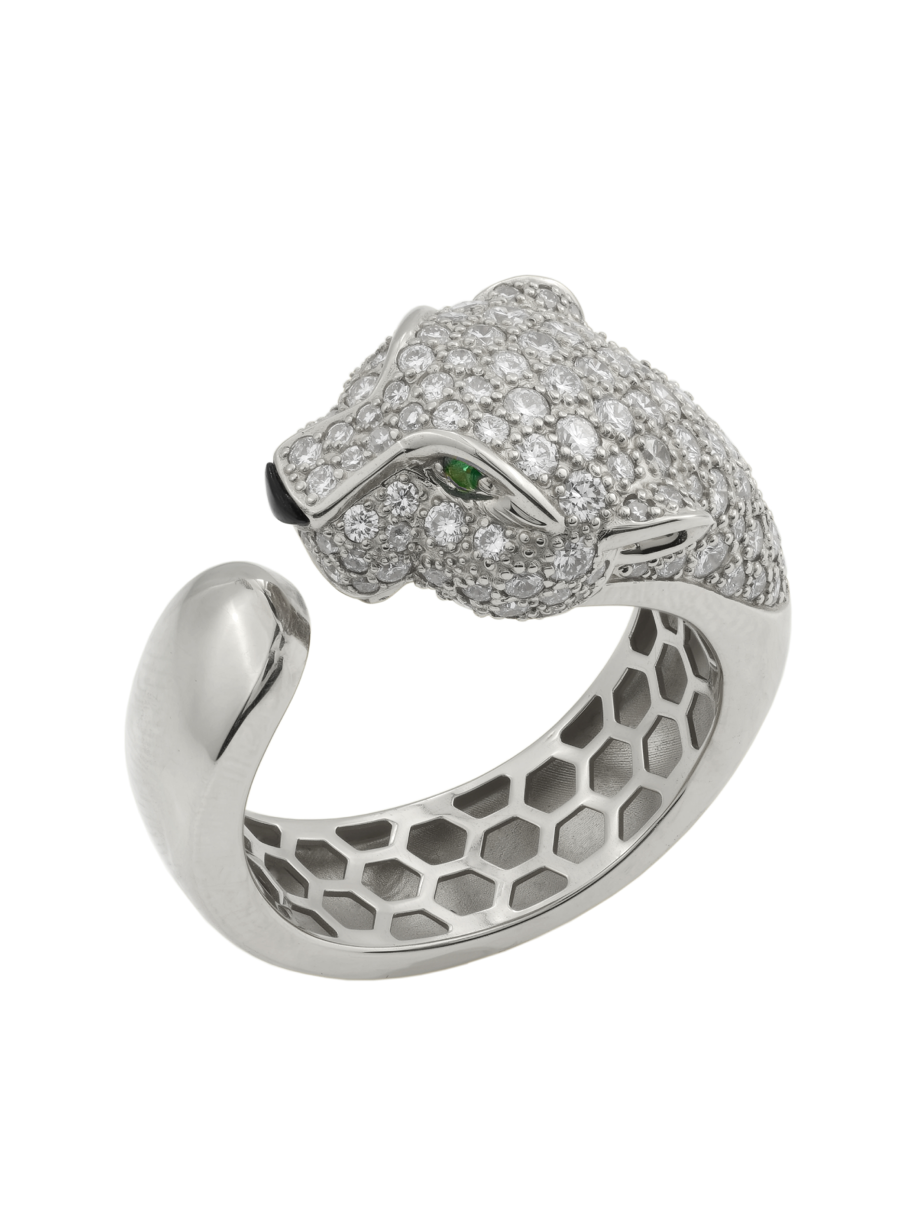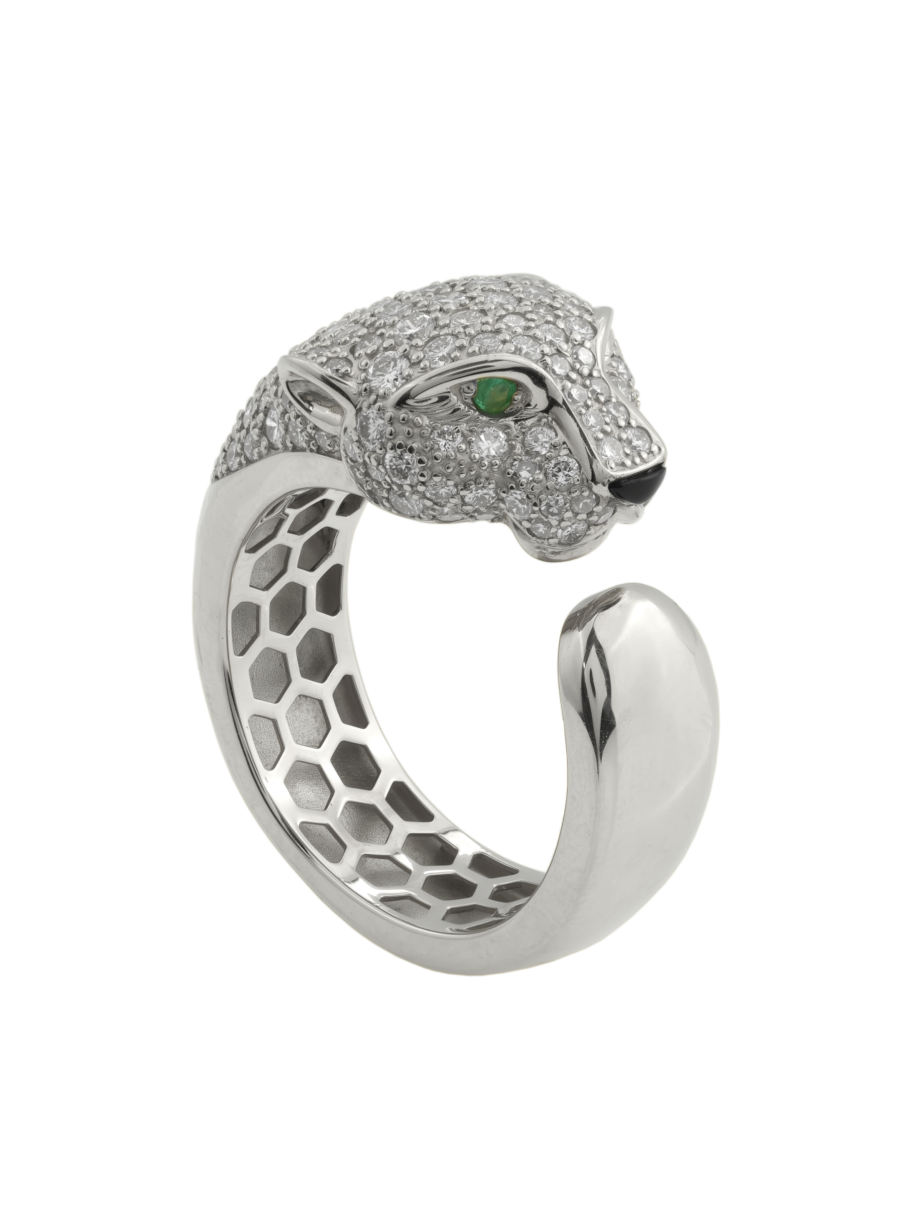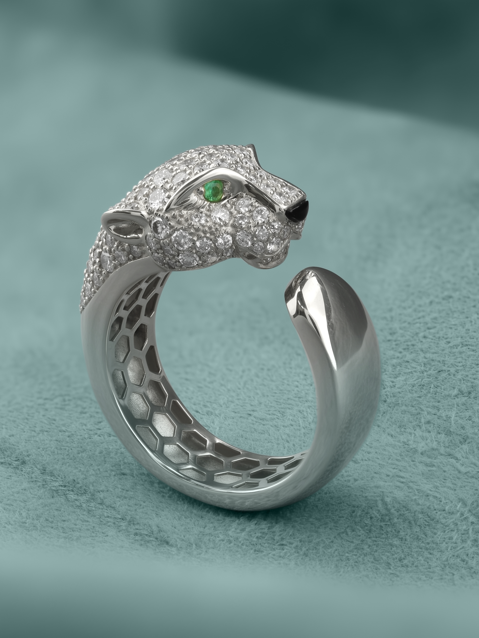 Кольцо из белого золота c бриллиантами, изумрудом и ониксом