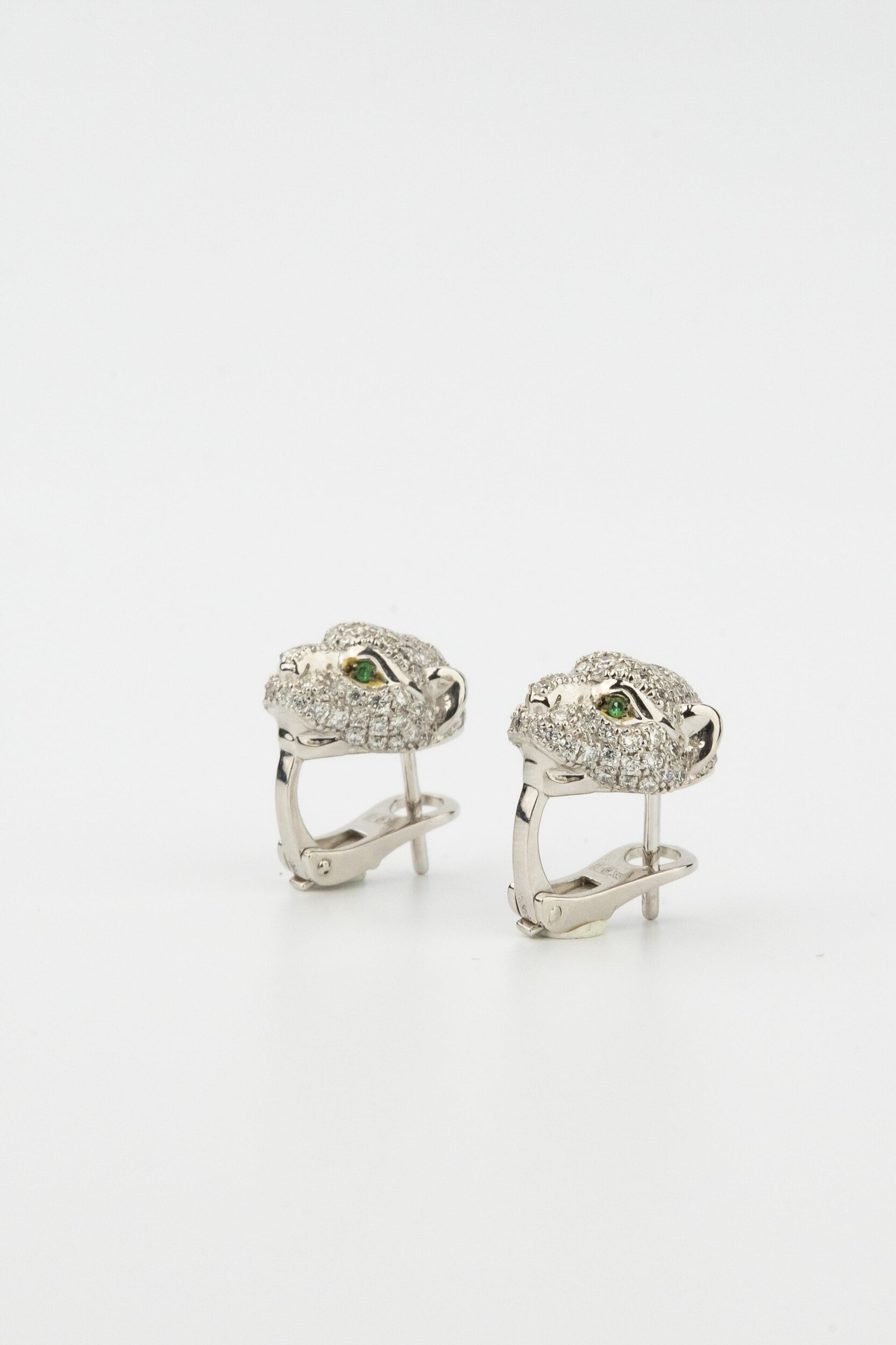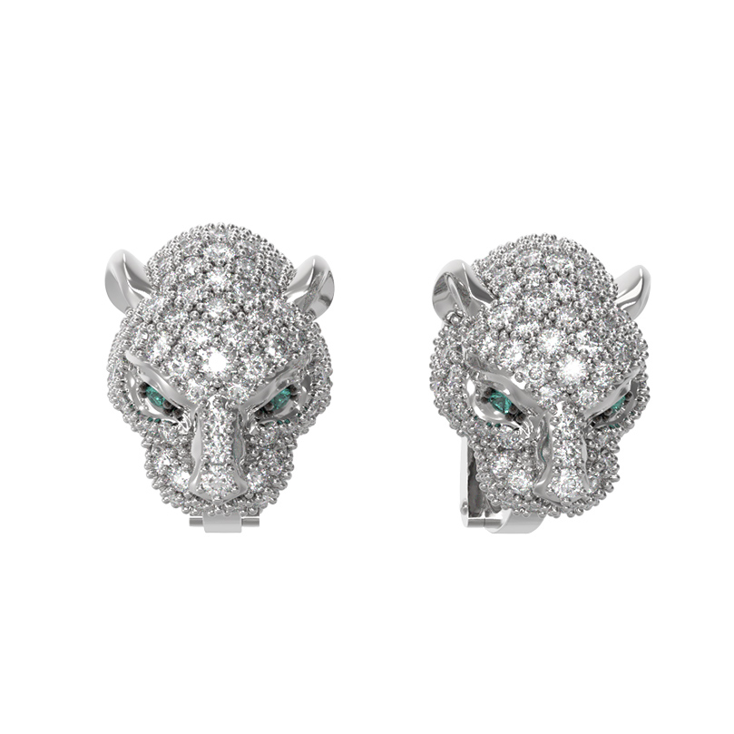 Серьги из белого золота c бриллиантами и изумрудом