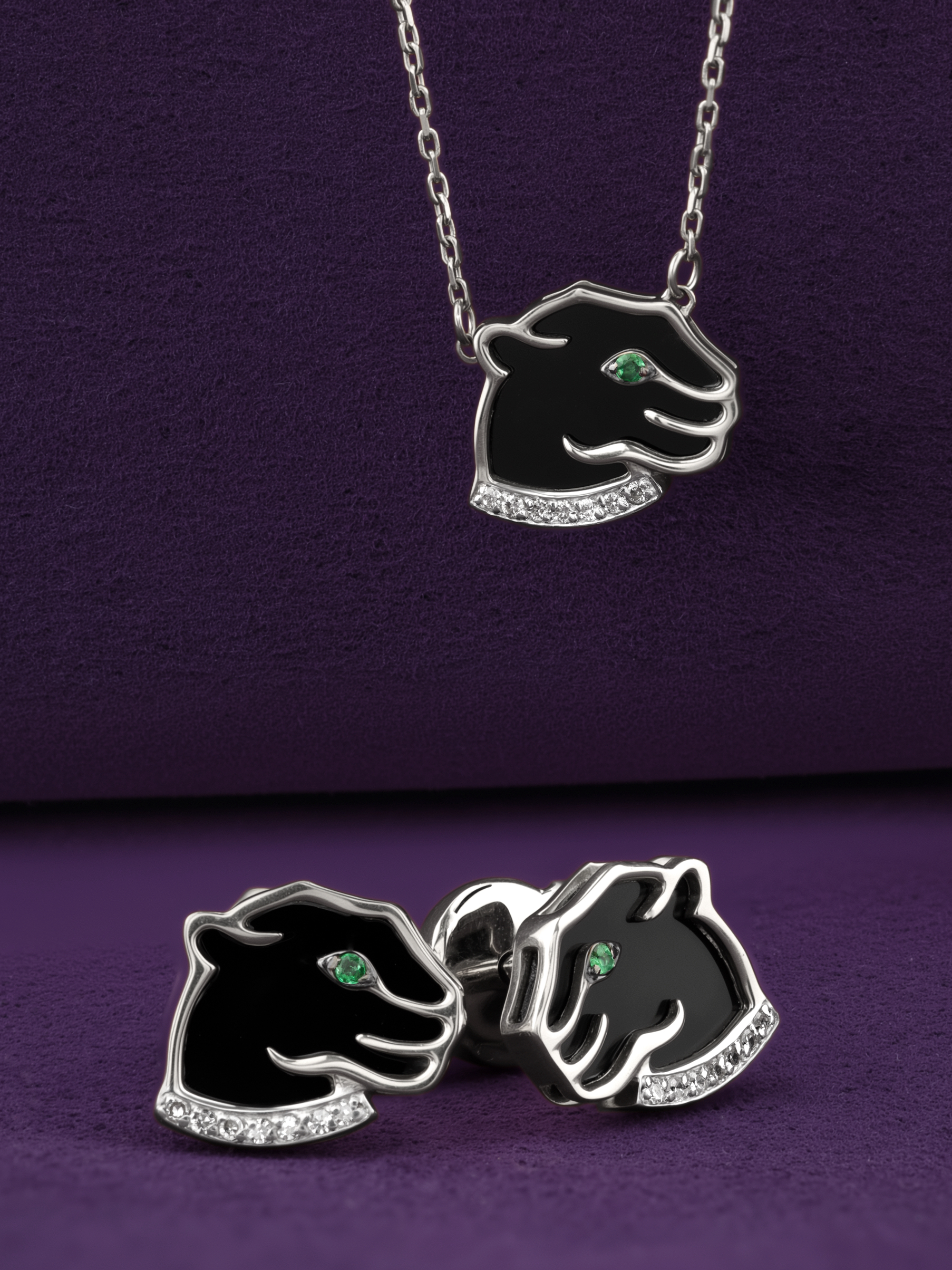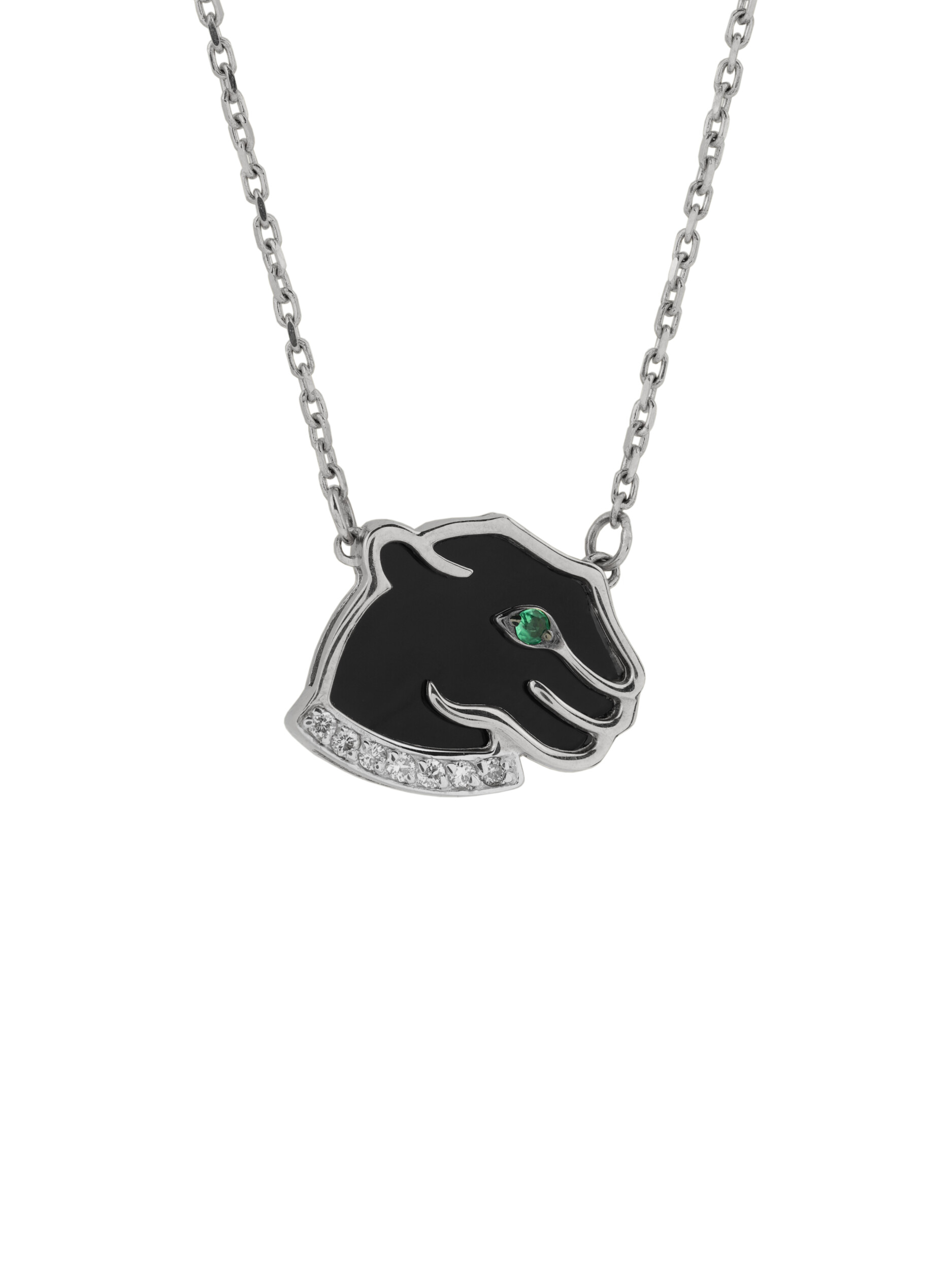 Колье из белого золота c бриллиантами, изумрудом и ониксом