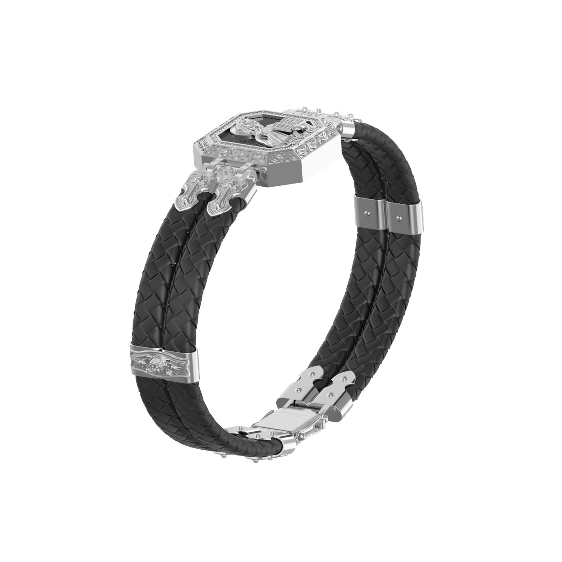 На лицевой стороне основного звена изображена икона Господа и Спасителя нашего Иисуса Христа — Господь Вседержитель или Пантократор (от греч. всевластный, всесильный). Он представлен как Царь Небесный и будущий Судия мира. Именование Иисуса «Вседержителем» указывает, с одной стороны, на Его Божественную природу: «Аз есмь Альфа и Омега, начало и конец, говорит Господь, Который есть и был и грядет, Вседержитель» (Откр. 1: 8). С другой стороны, такое именование связано и с человеческой природой Христа, искупившего крестной жертвой людские грехи и обновившего тем самым человеческую природу. Господь Иисусь Христос изображен фронтально огрудно. Главу Спасителя осеняет нимб, на нем угадывается крест. Крест символизирует голгофскую жертву Спасителя. По греческой традиции, на нимбе написаны буквы Омега, Омикрон, Ню — вместе они обозначают слово Сущий, одно из имен и характеристику Бога, согласно Священному Писанию. Правой рукой Он благословляет, а левой держит Евангелие — благую весть, принесенную Христом всему миру. Также означает она тот новый мир, который будет сотворен Богом после второго пришествия Христа. Символизирует и Книгу Жизни, где записаны имена всех, возлюбивших Бога. Всемогущий Бог предстает здесь не как обличающий судья, а как милостивый отец, ждущий возвращения блудных детей.