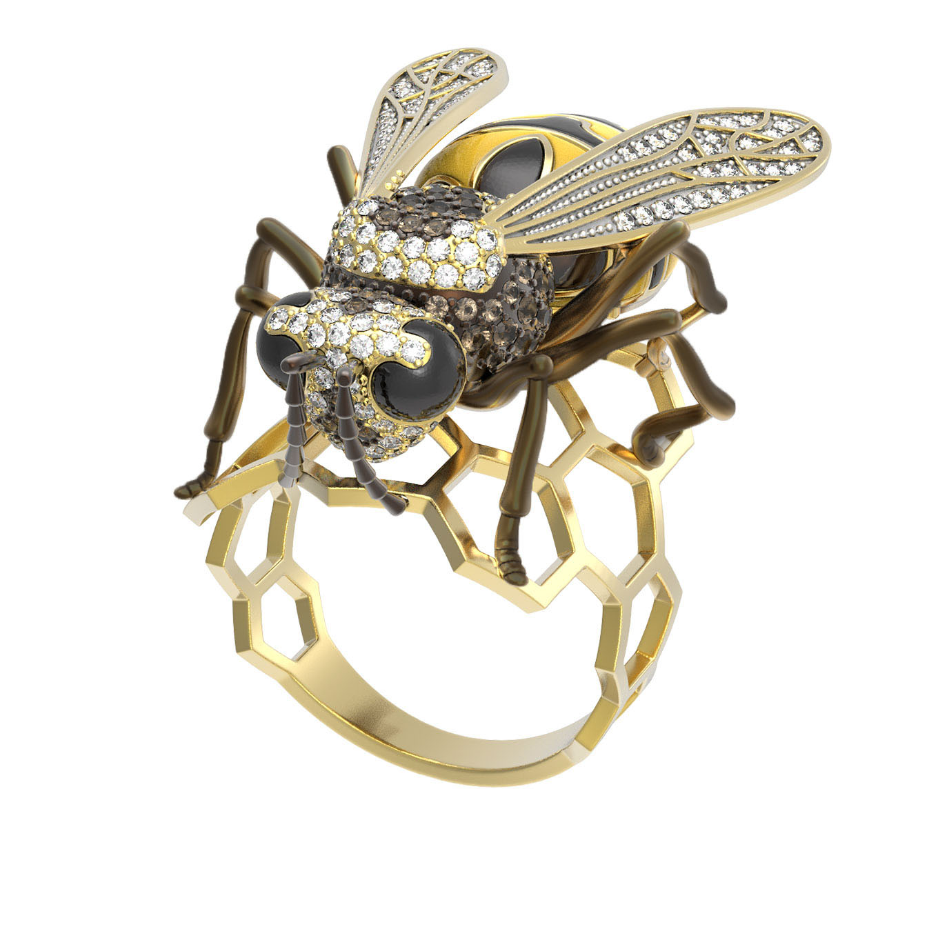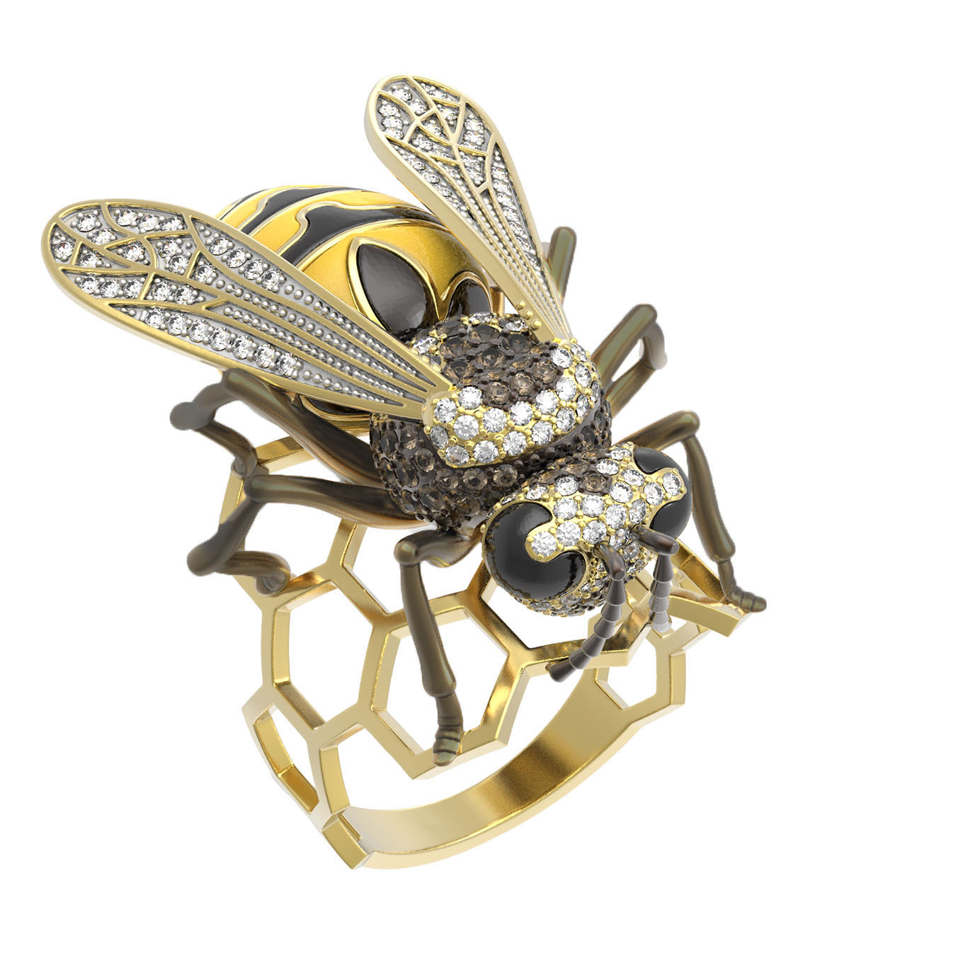 Кольцо из лимонного золота c эмалью и фианитом