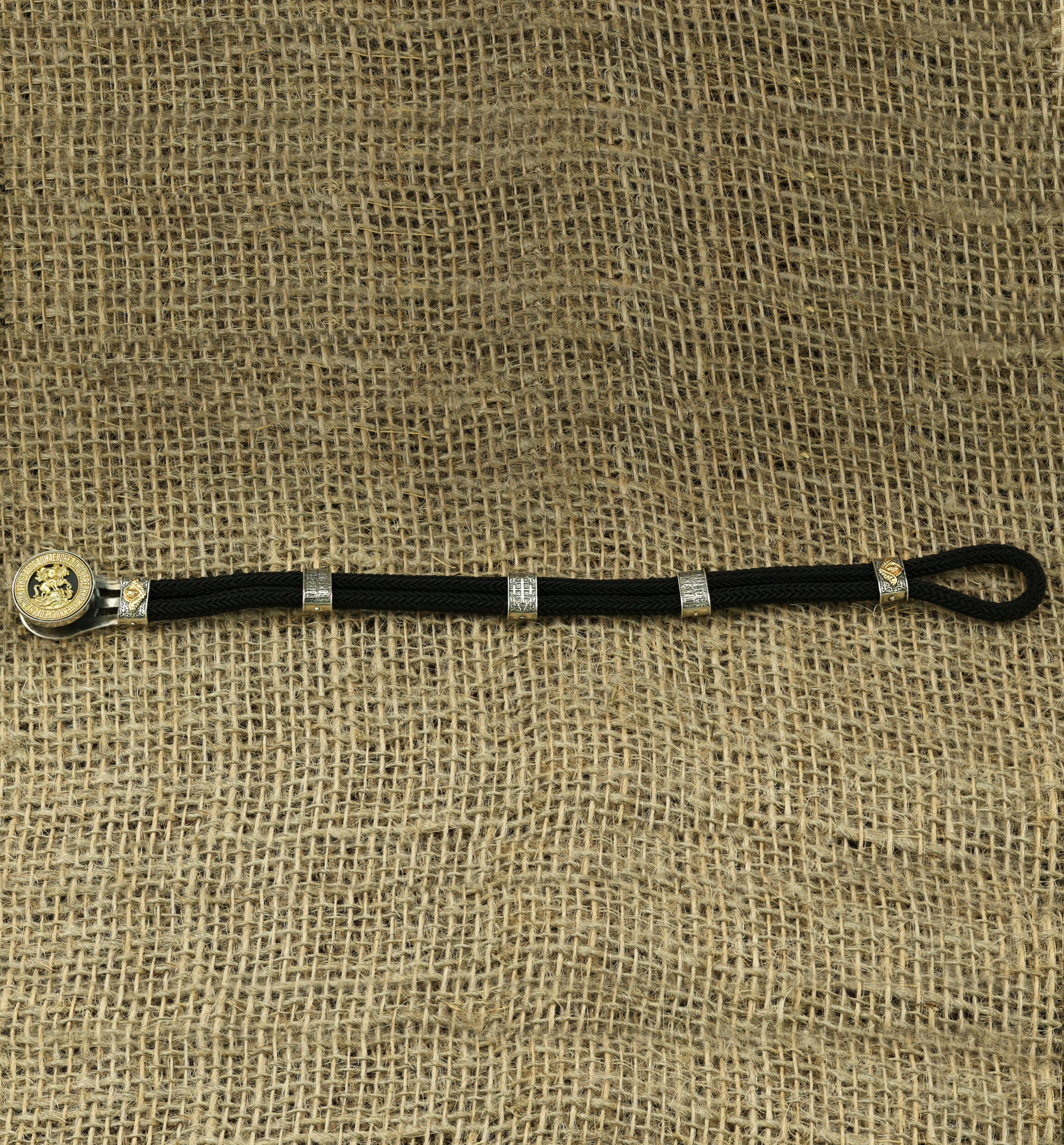Браслет из серебра и золота c ониксом и шёлковым шнурком