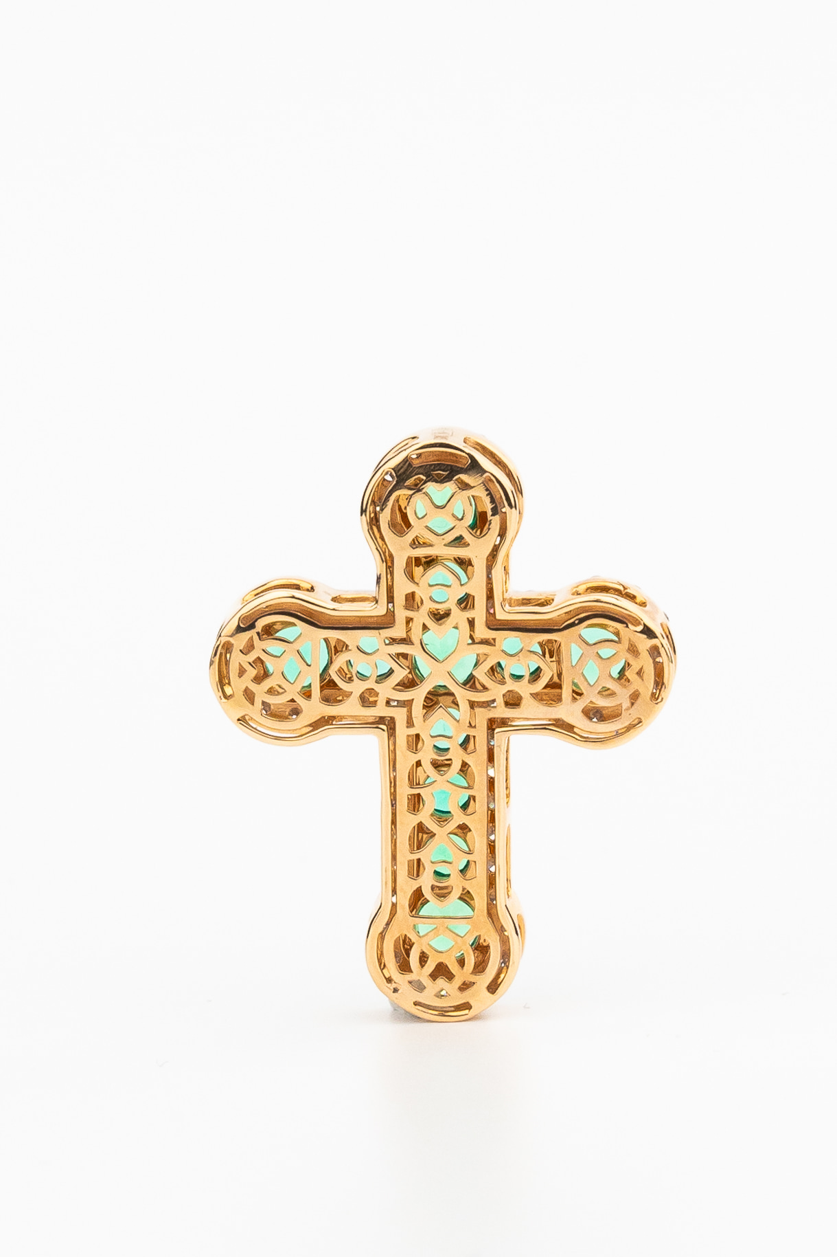 Крест из золота c бриллиантами и изумрудом
