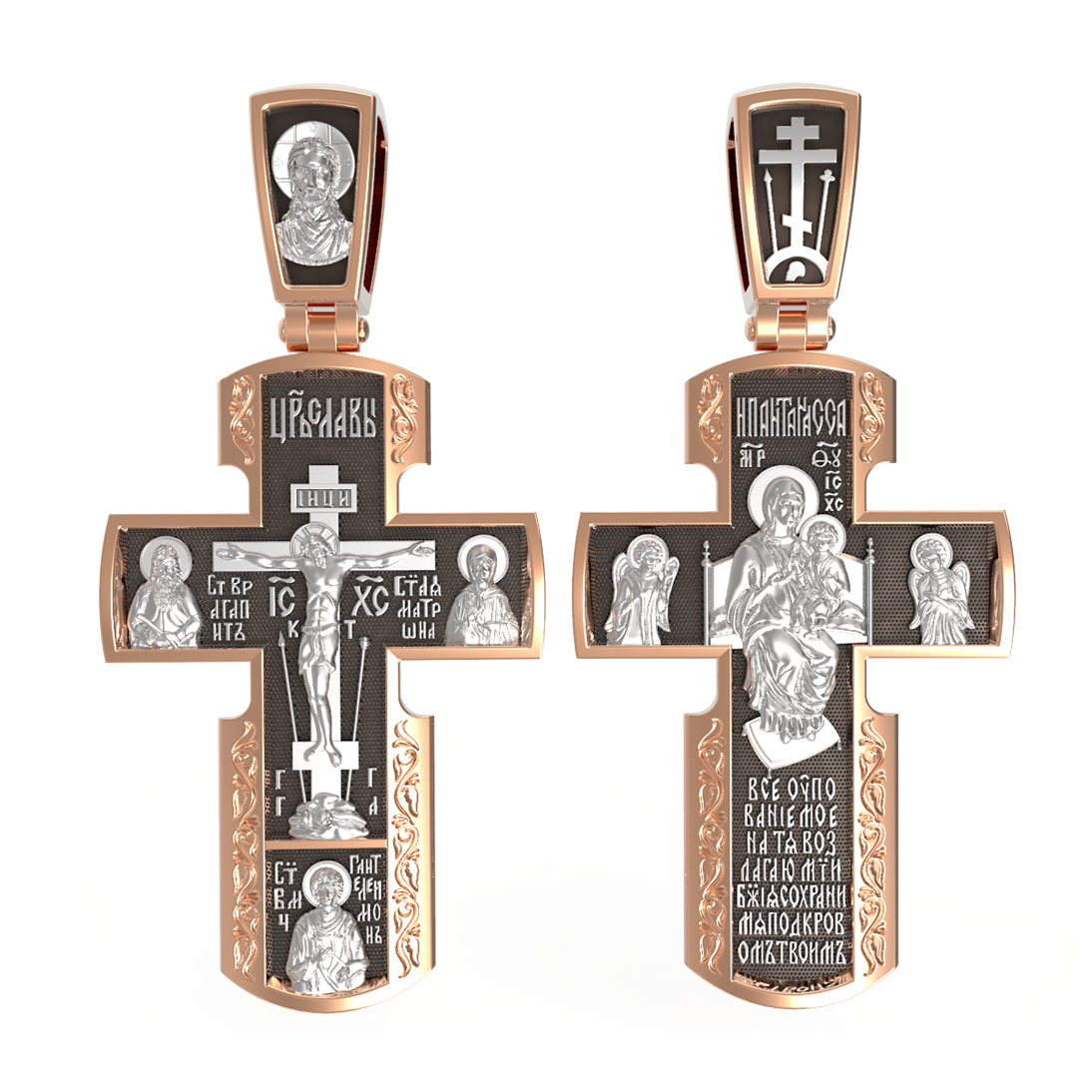 Как действенная помощь в немощах и болезнях был создан крест с образами святых целителей и со знаменитой афонской иконой Божией Матери «Всецарица».