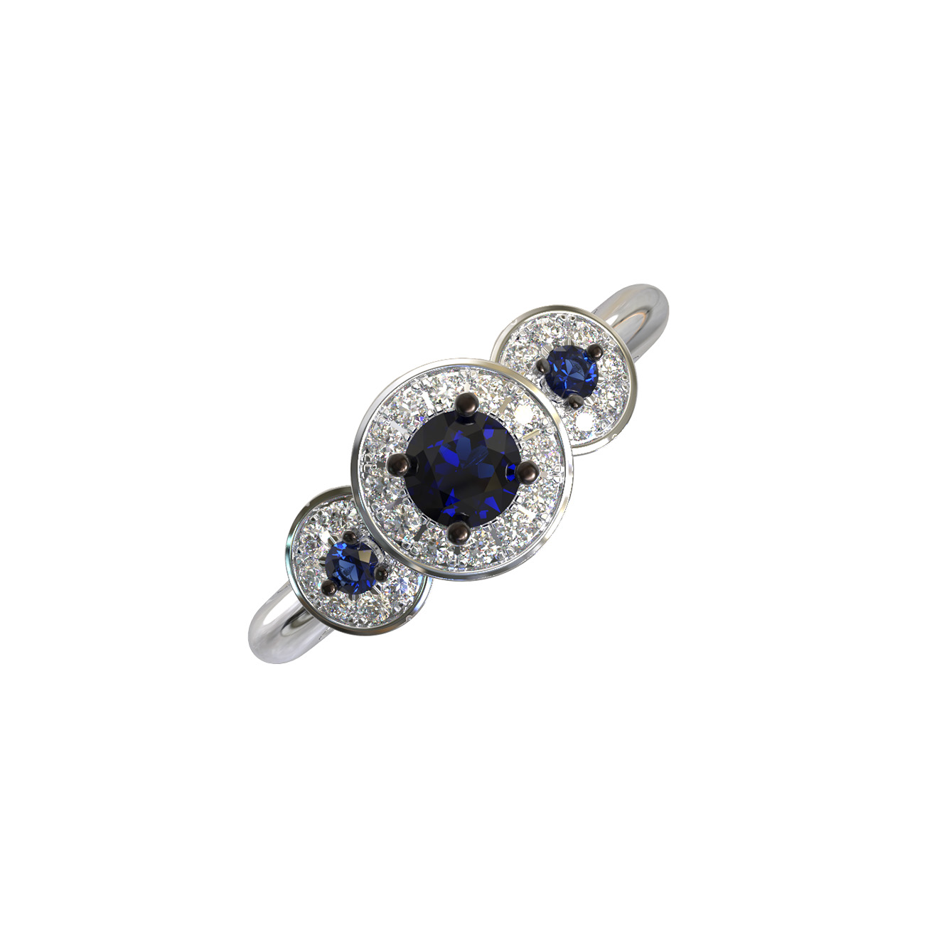 Кольцо из белого золота c бриллиантами и сапфиром