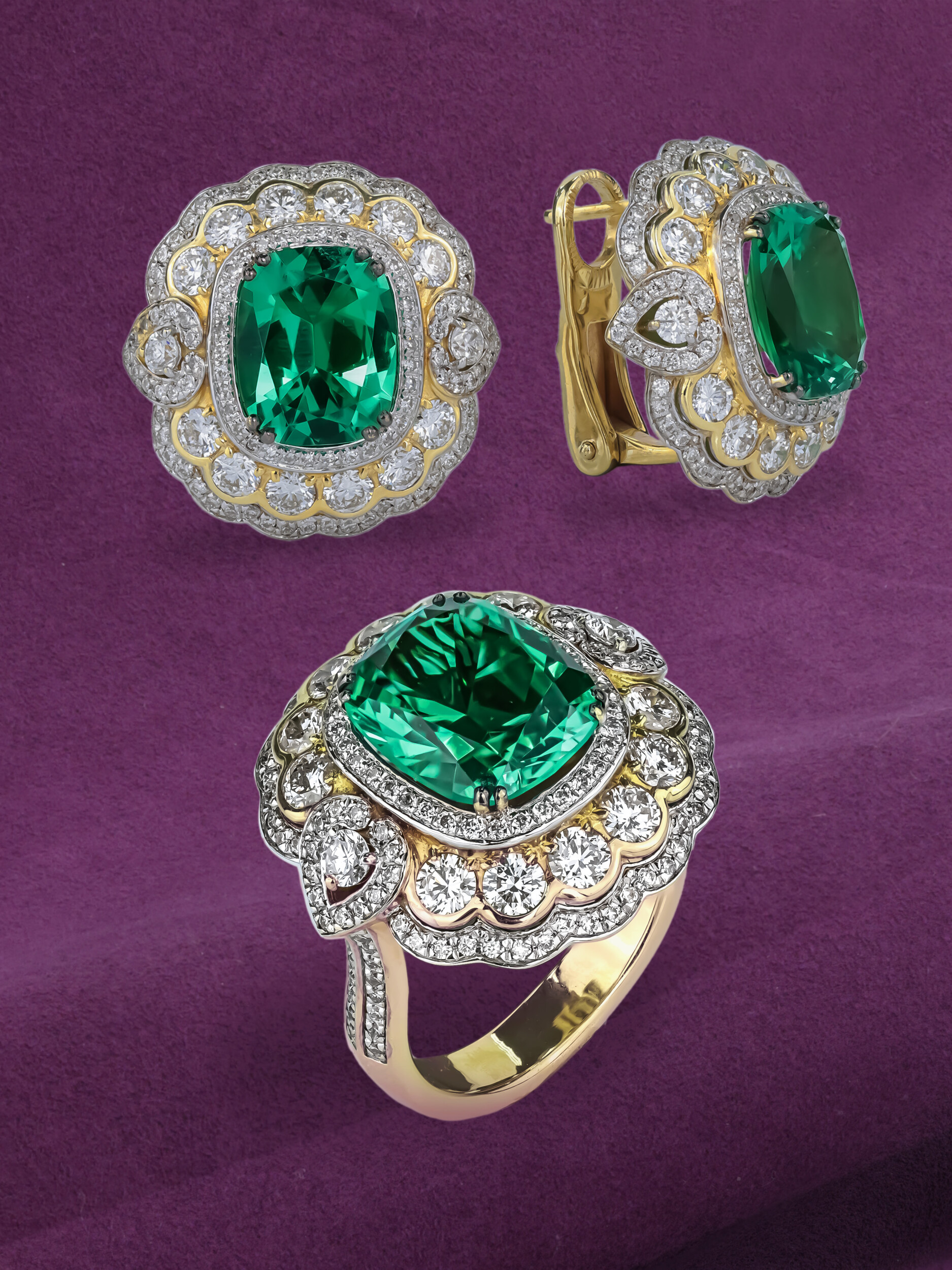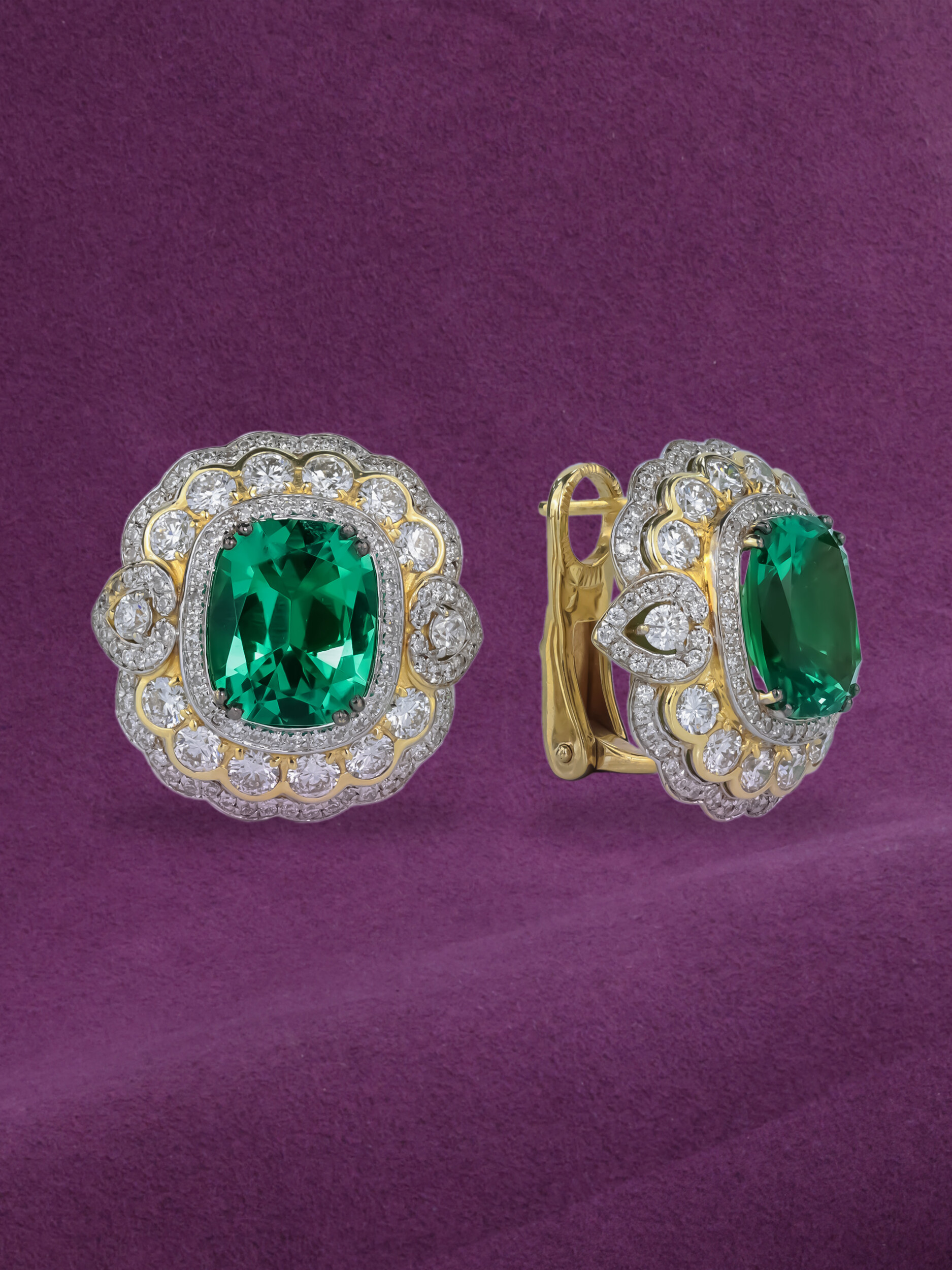 Серьги из лимонного золота c бриллиантами и изумрудом