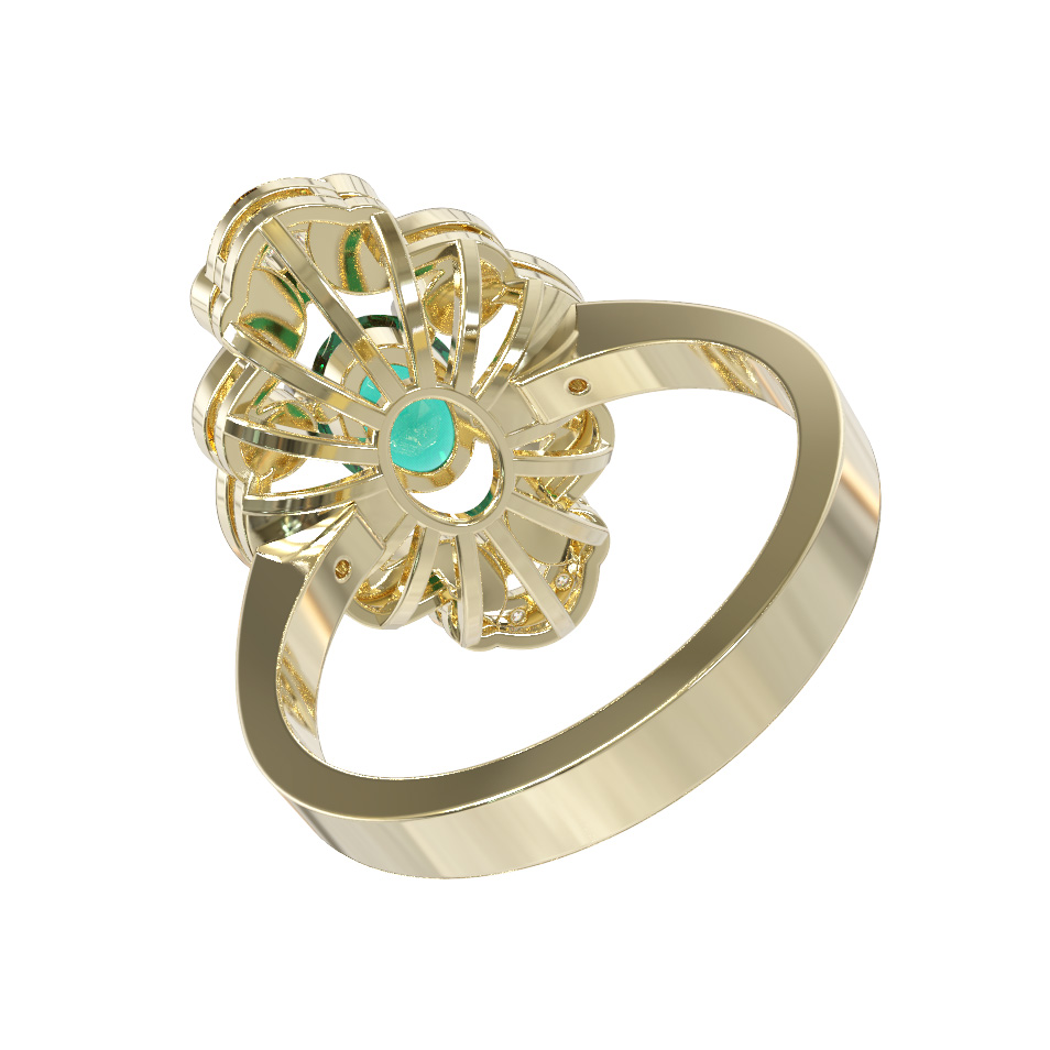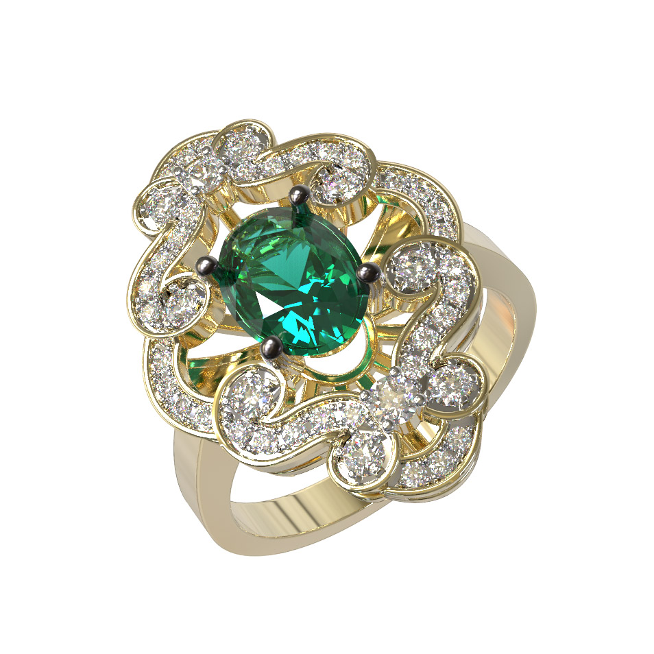 Кольцо из лимонного золота c бриллиантами и изумрудом