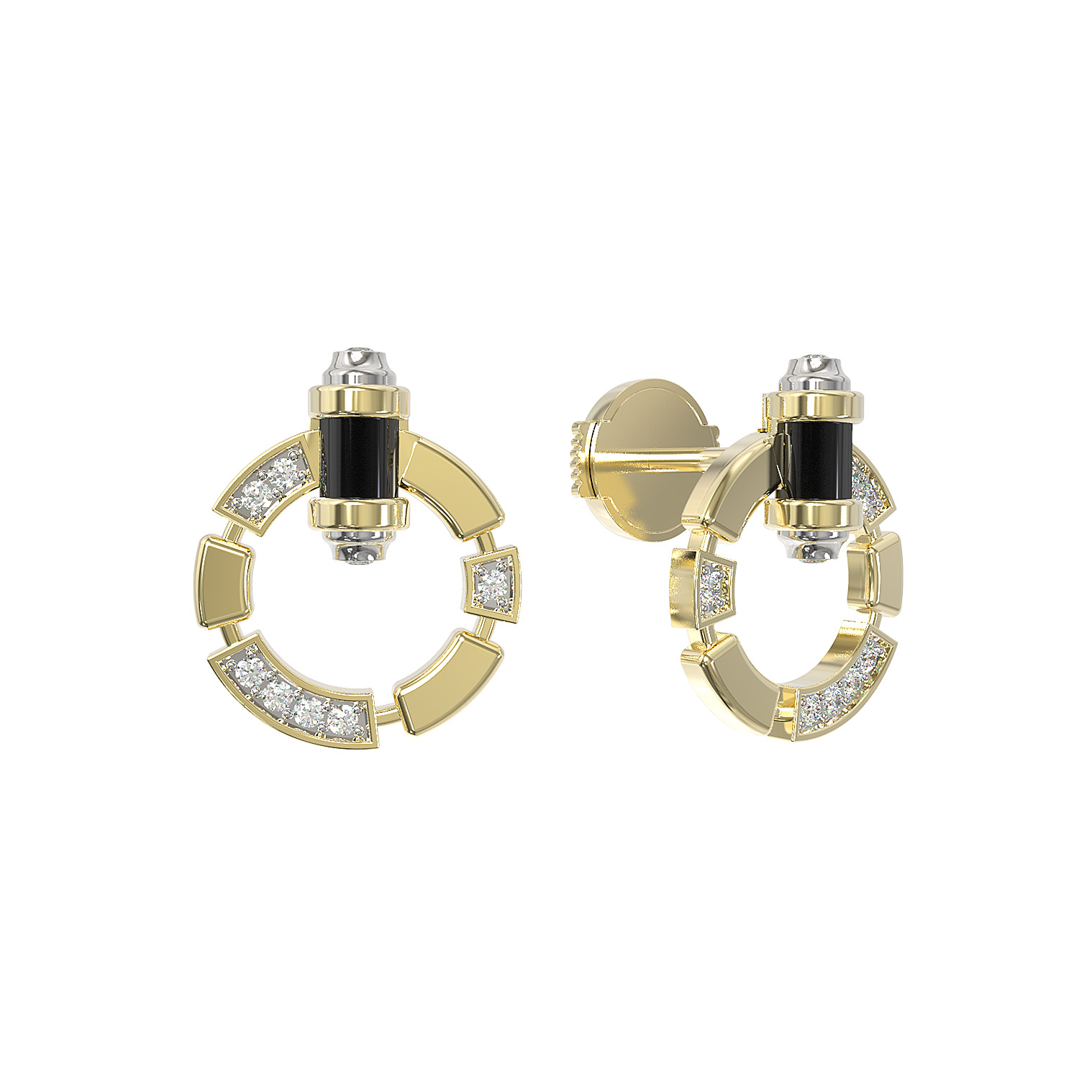 Серьги из лимонного золота c бриллиантами и ониксом
