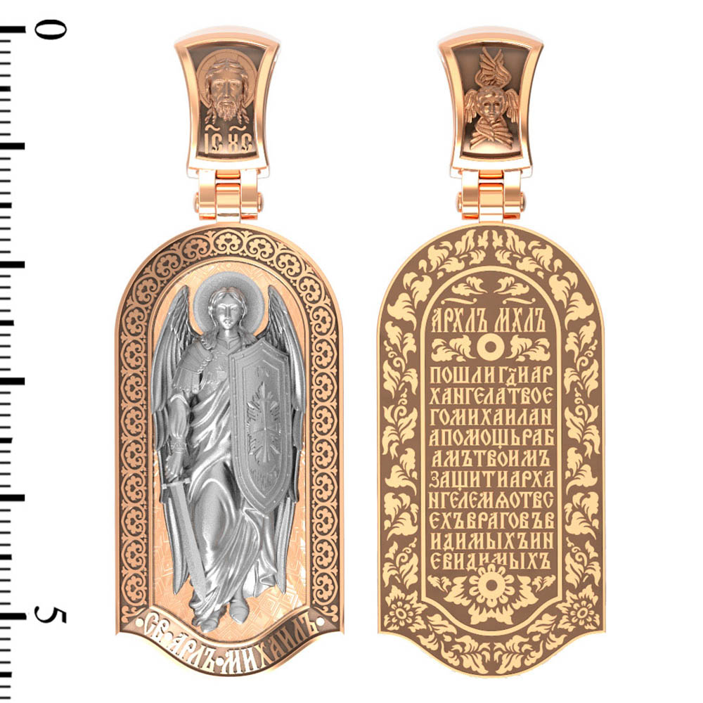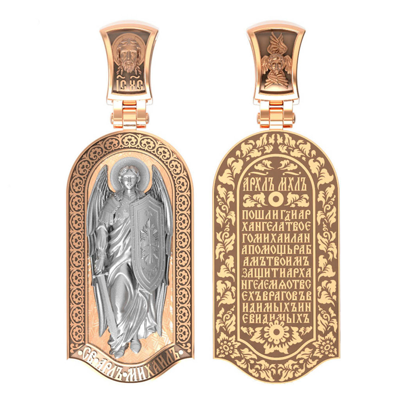 Основой композиции лицевой стороны является ростовое изображение Архангела Михаила — Архистратига всех Небесных Воинств. Он ведет непримиримую войну против сил зла, охраняет райские врата и защищает души людей. Его имя означает «Кто яко Бог?», так как он самый могучий и грозный враг зла. Он первым ополчился на Денницу, когда тот восстал против Бога, низверг его с Неба и не перестает сражаться с его темным воинством. Поэтому он часто изображается в виде воина, в доспехах и с огненным мечом. Но как служитель Небесного Царя и глава Ангелов и Архангелов на многих иконах он предстает в богатой одежде византийских придворных.