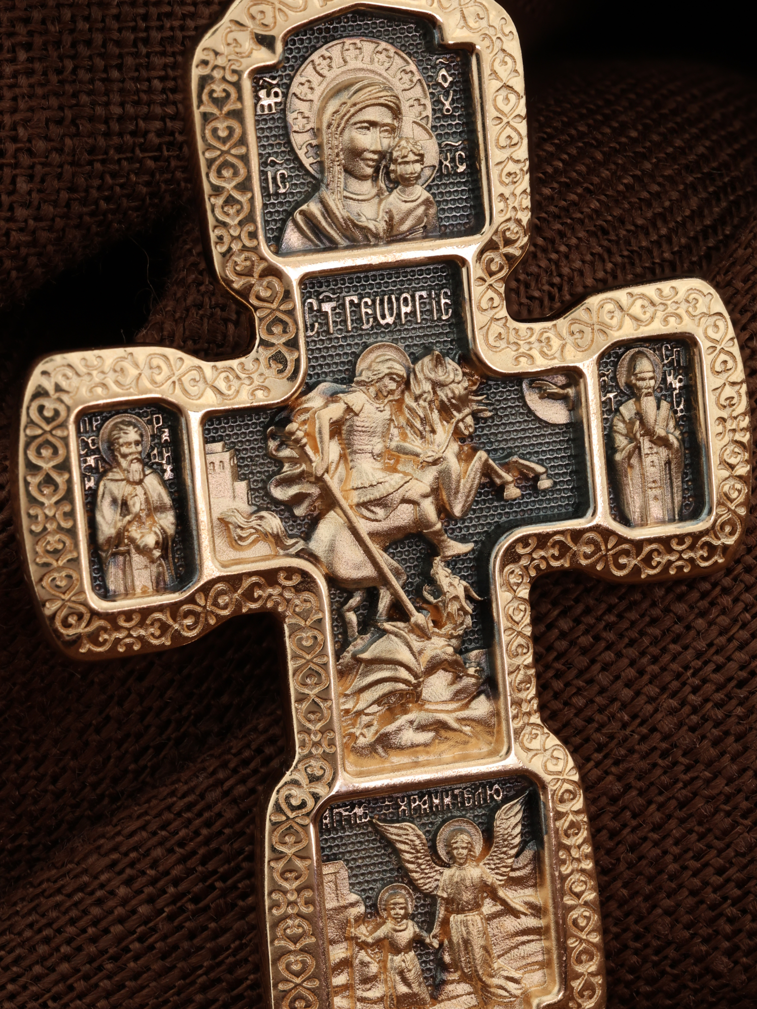 В центральной части оборота креста изображен Георгий Победоносец — покровителем и защитником воинов.