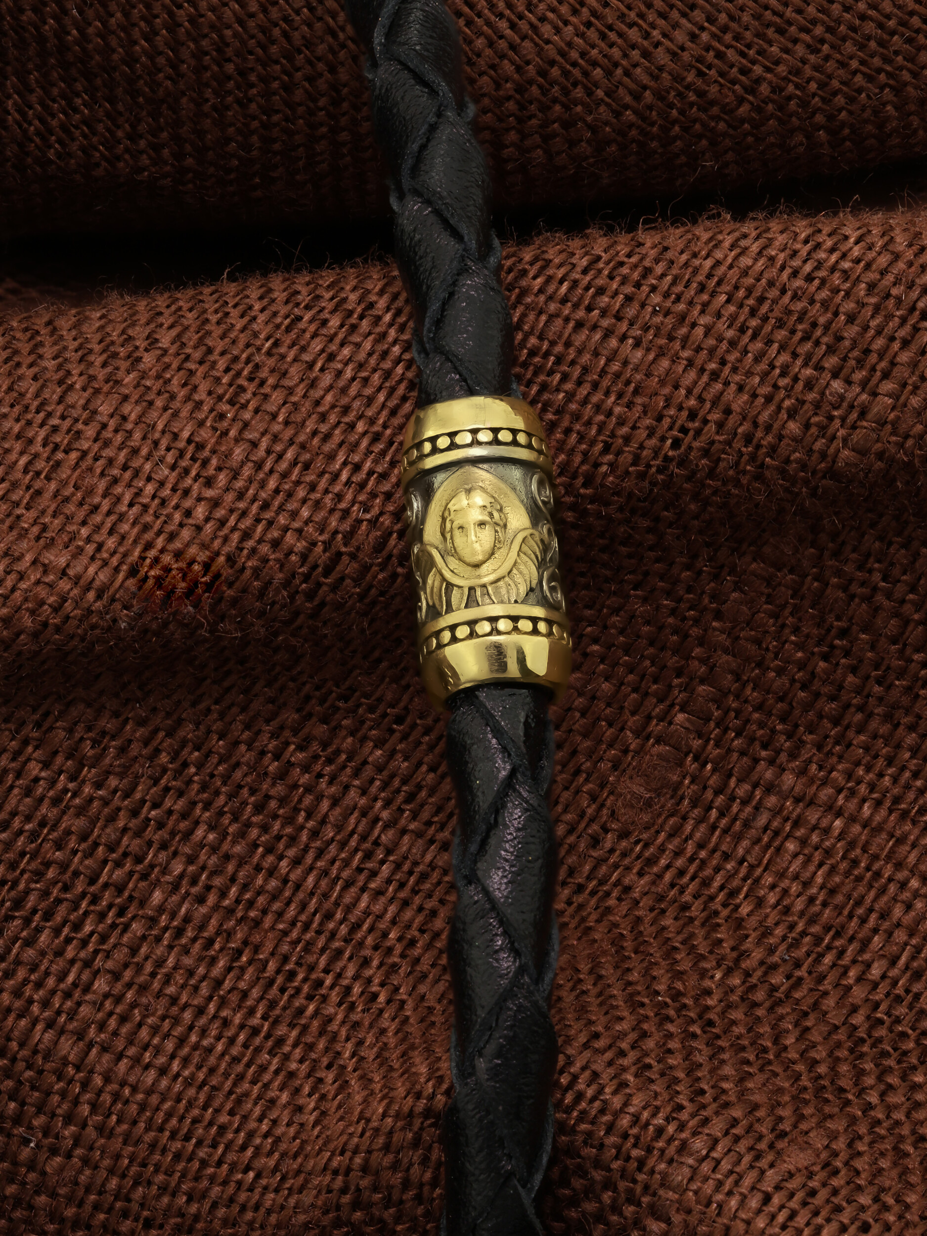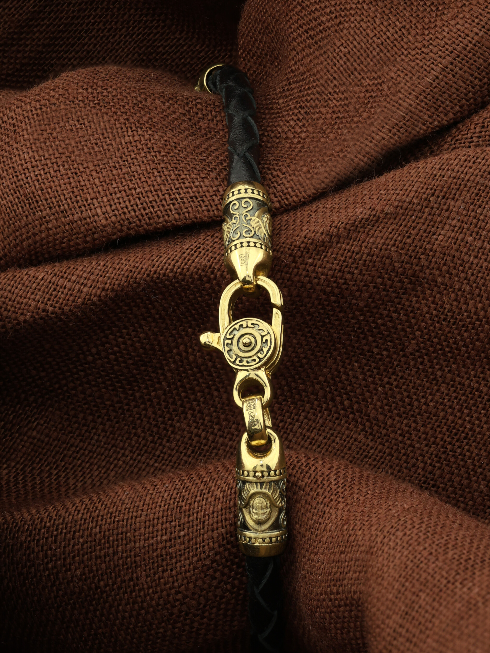 Браслет из лимонного золота c кожаным шнурком