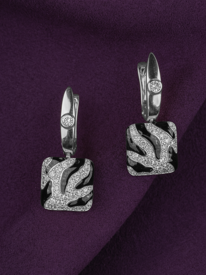 Серьги из белого золота c эмалью и бриллиантами