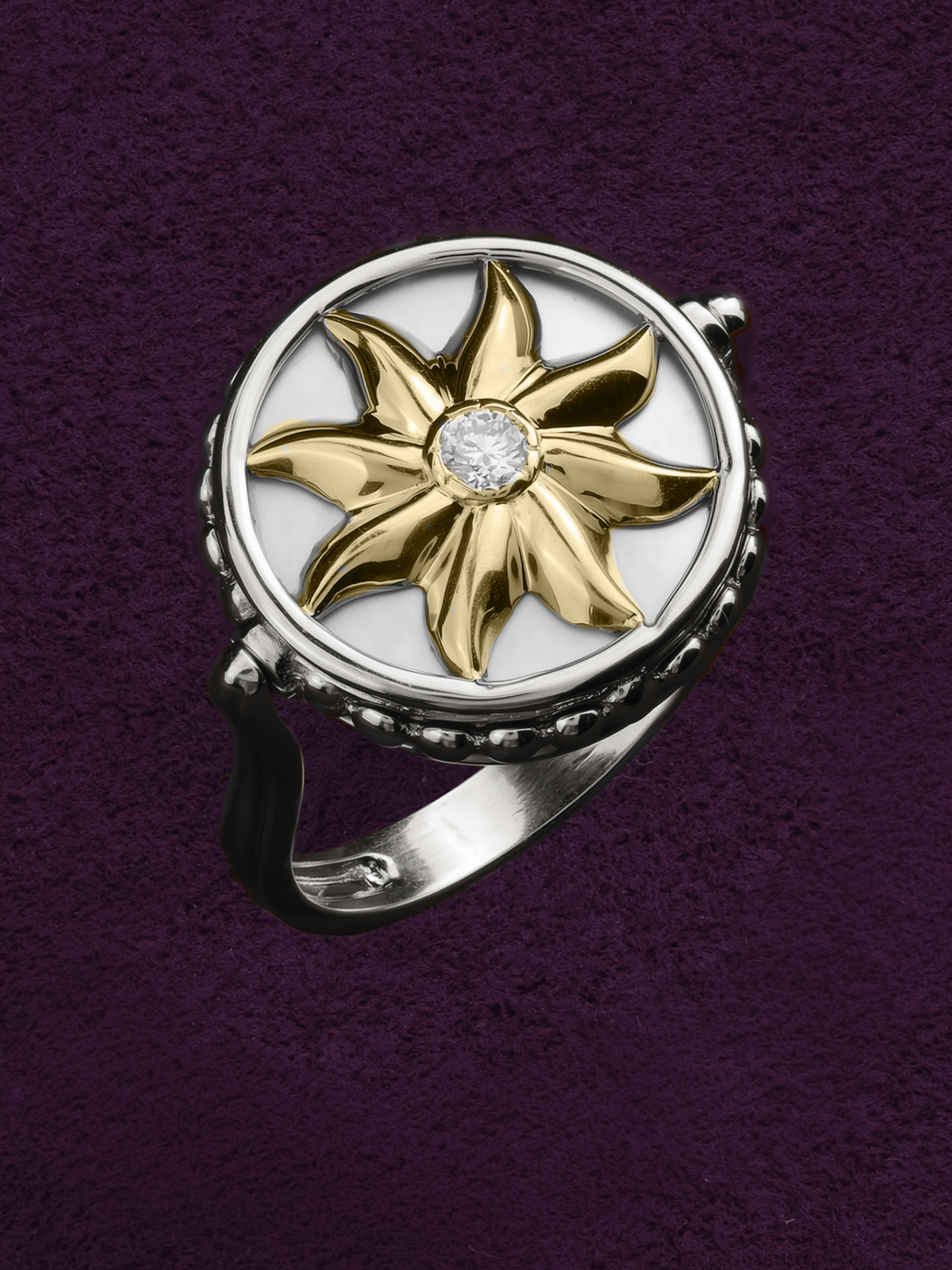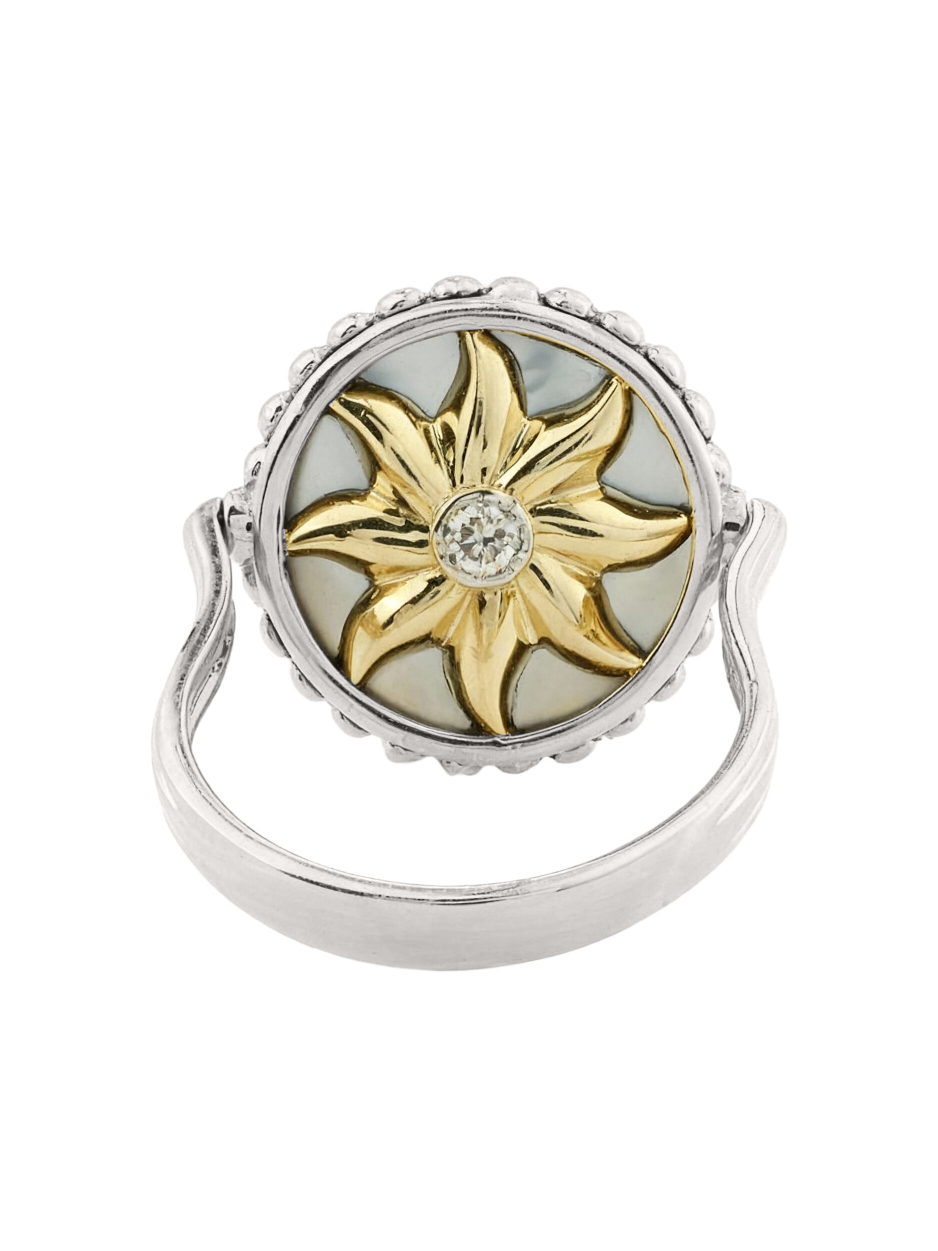 Кольцо из белого золота c бриллиантами, ониксом и перламутром