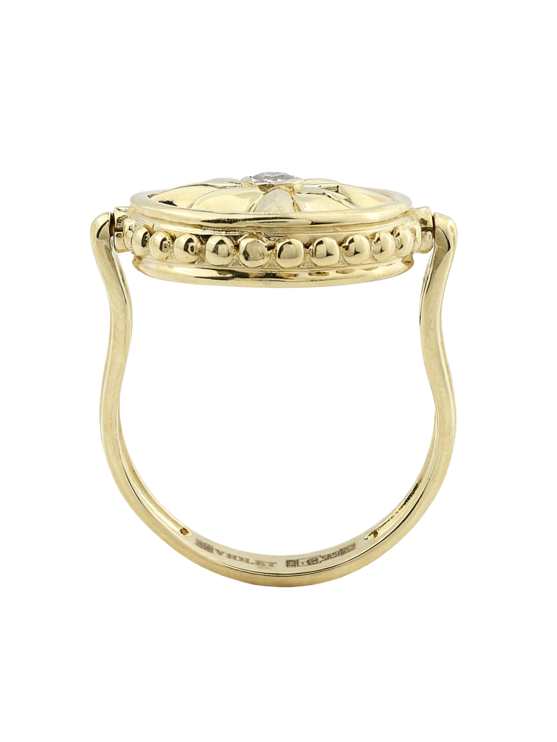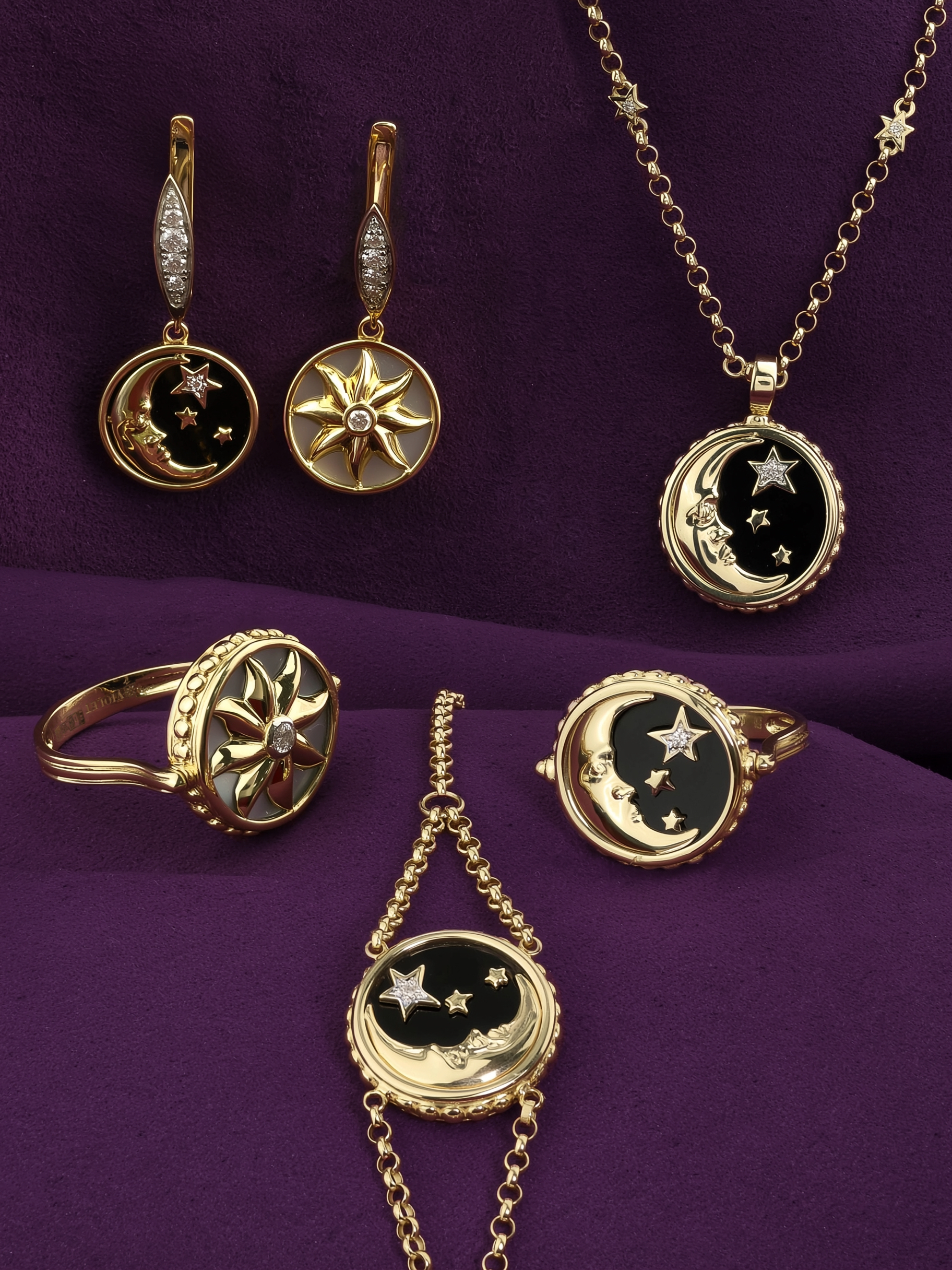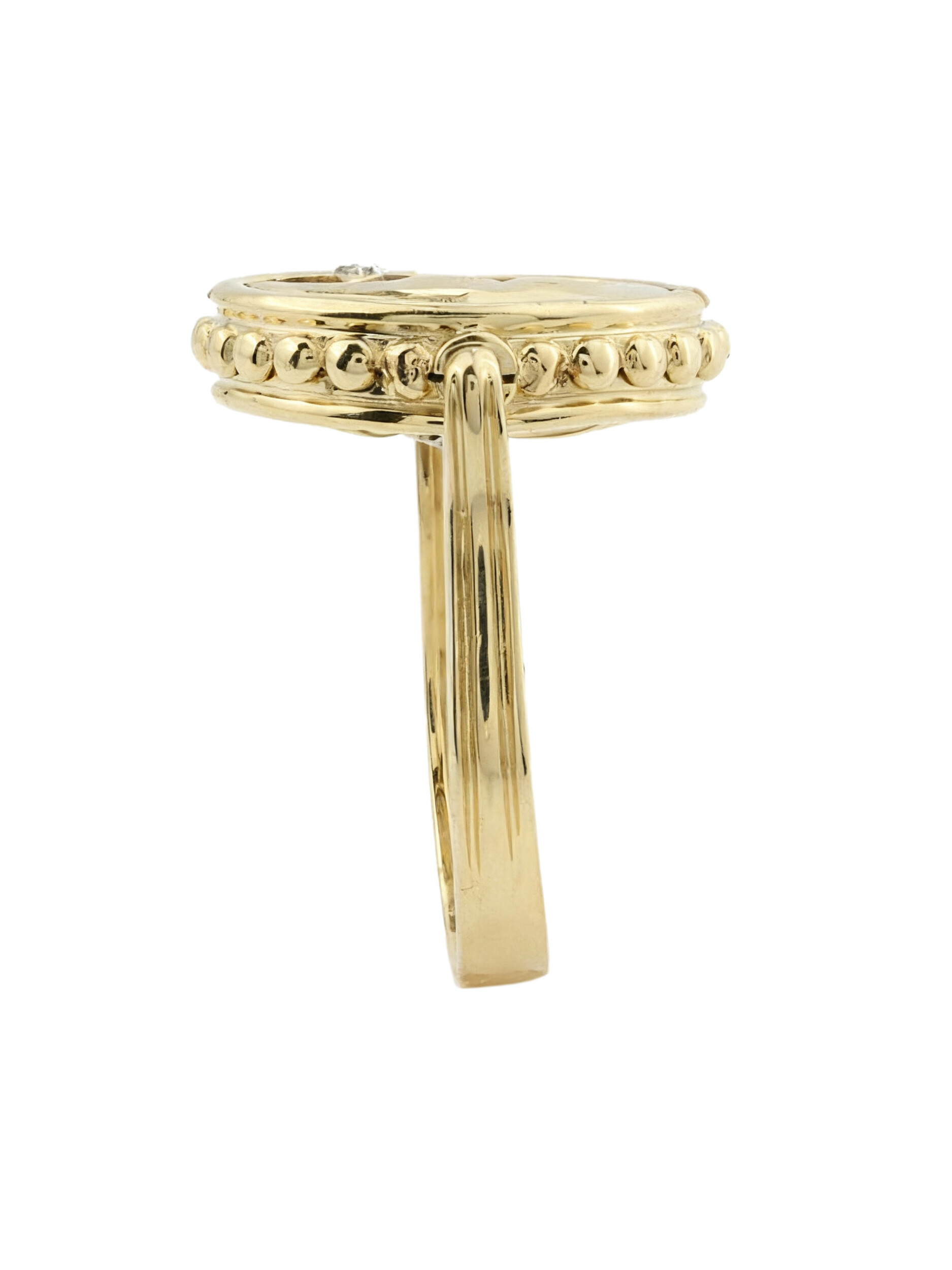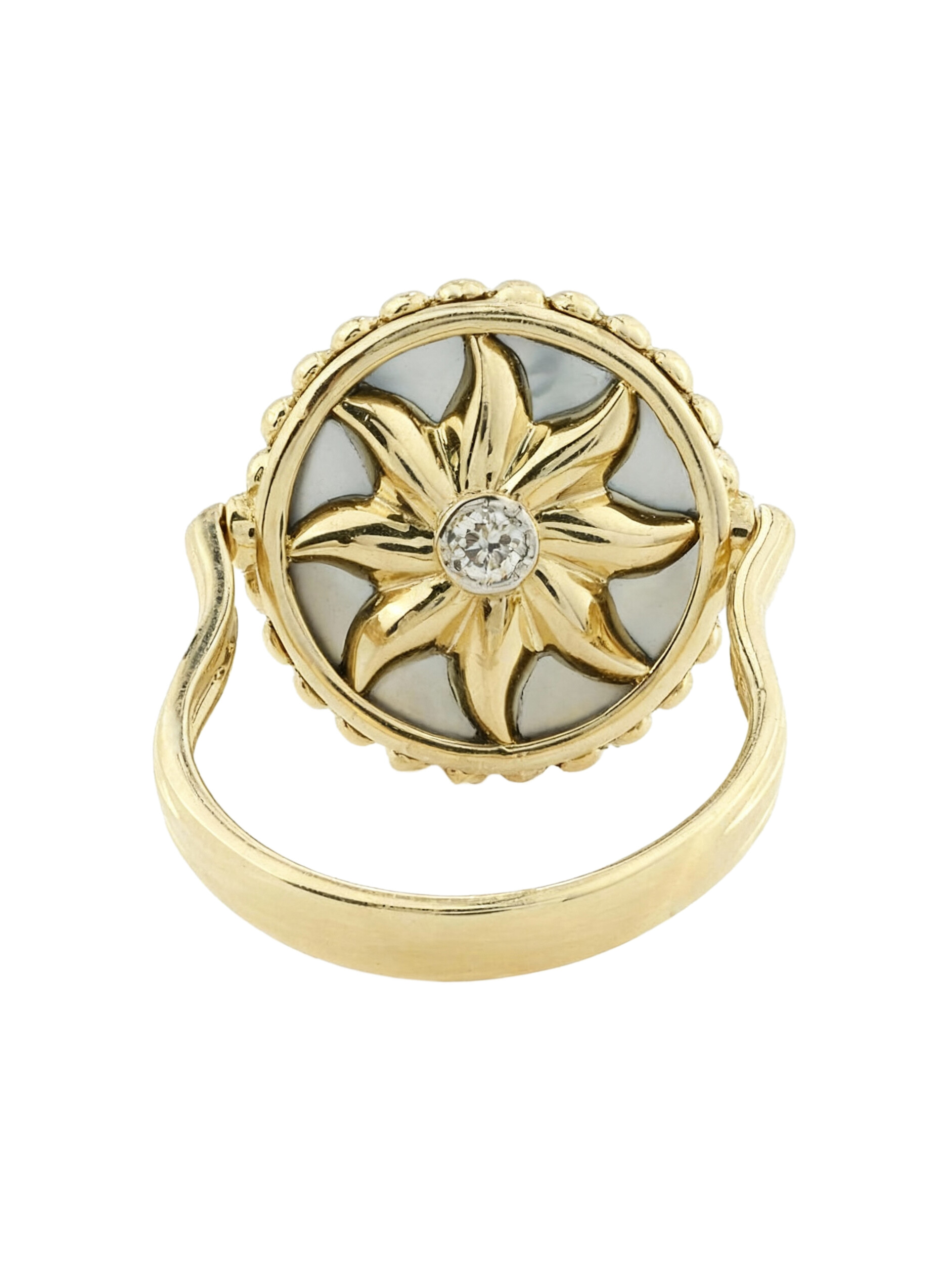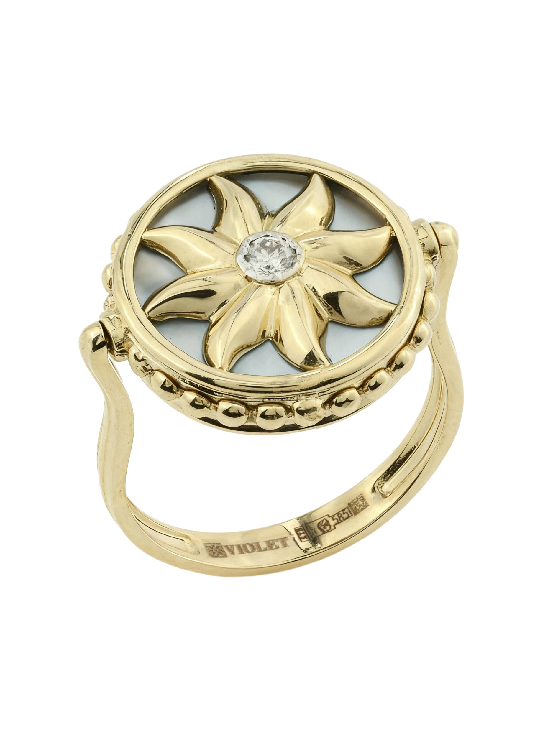 Кольцо из лимонного золота c бриллиантами, ониксом и перламутром