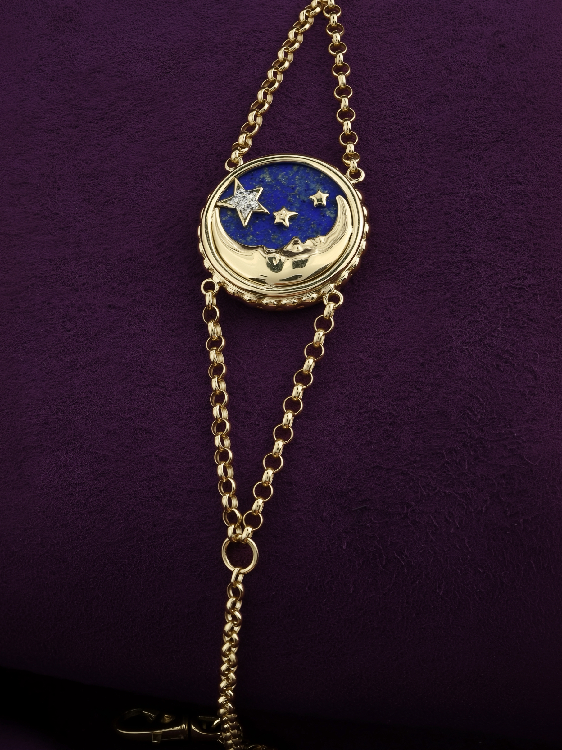 Браслет из лимонного золота c бриллиантами, лазуритом и перламутром